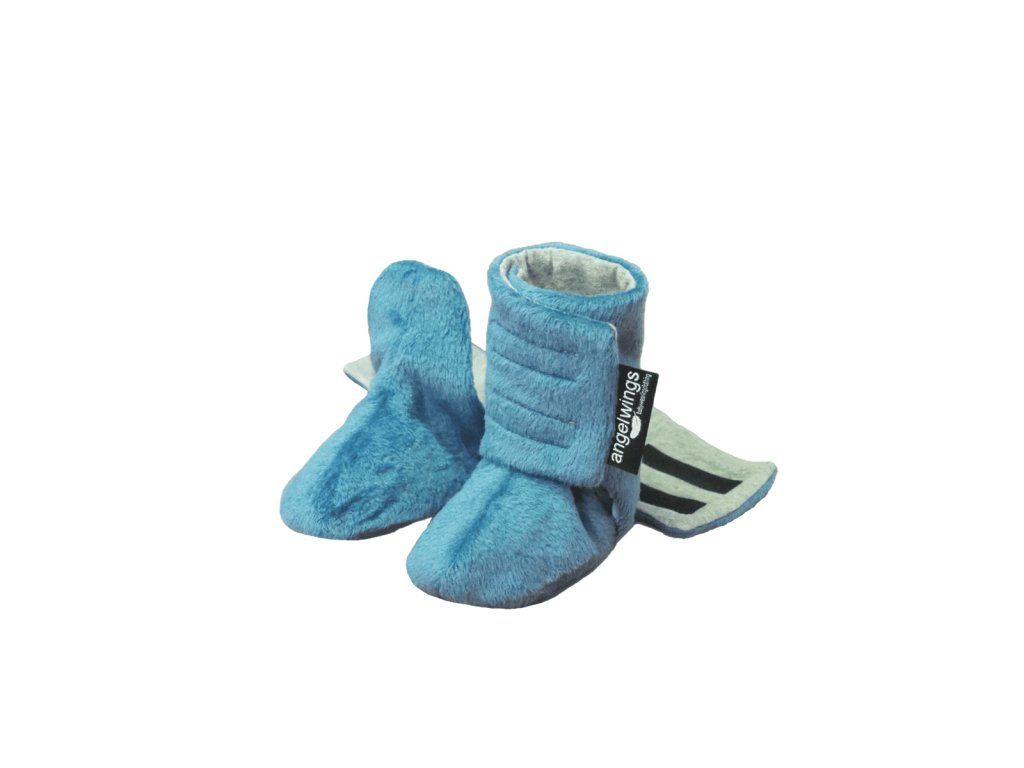 Angel Wings Dětské válenky chlupaté jeansově modrá se šedou