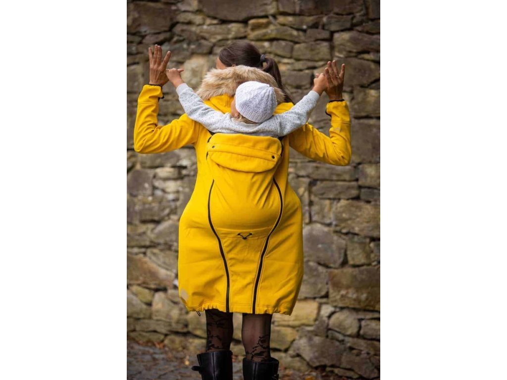 Díky propracovanému střihu je kabát elegantní a zároveň nijak neomezuje v pohybu. Je dostatečně dlouhý, aby nošenému dítěti ochránil nohy a nosiči kryje záda i při aktivním pohybu. Dostatečně dlouhé jsou i rukávy zakončené praktickým otvorem pro palec, což výrazně zvyšuje komfort při nevlídném počasí. Bunda vypadá skvěle i bez vsadky a využijete ji tak i kdykoli mimo nošení dítěte.