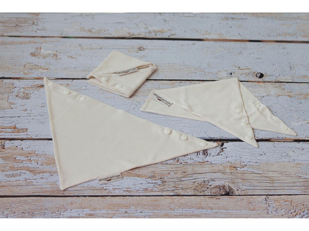 Trojhránek z nebarvené biobavlny si jednoduše pomocí patentků přicvaknete na ramínka podprsenky.