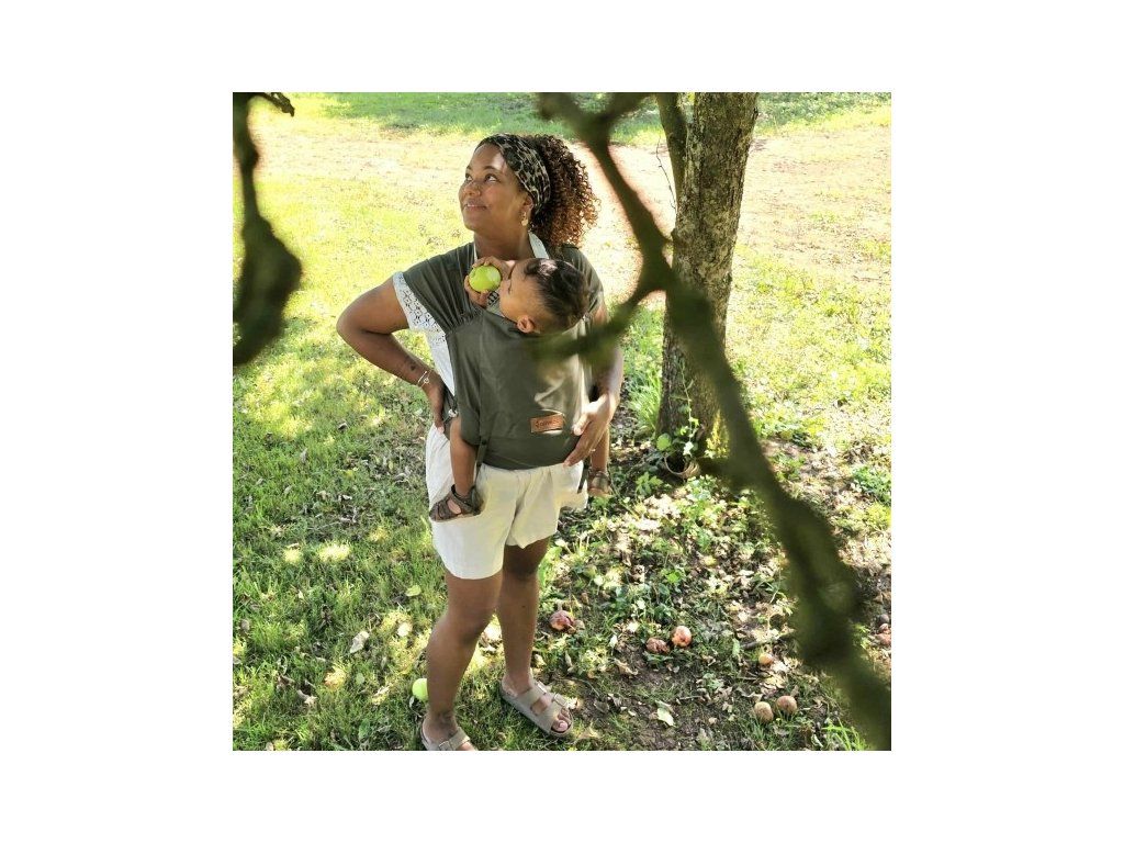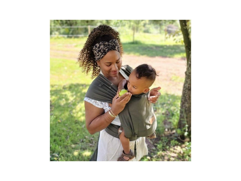 - Doširoka roztažitelné ramenní popruhy z látek šátků na nošení dětí pro pohodlnou oporu v jakékoliv nosící poloze.