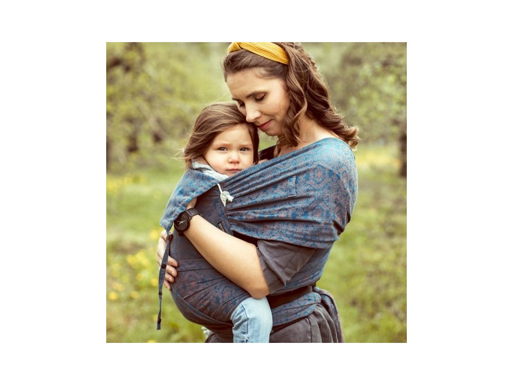 - doširoka roztažitelné ramenní popruhy z látek šátků na nošení dětí pro pohodlnou oporu v jakékoliv nosící poloze