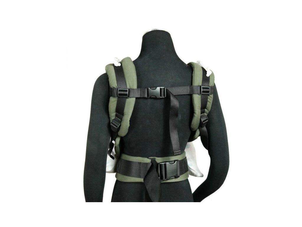 U starších dětí nebo nošení na zádech je možné přezky připnout do boku zádového panelu, což optimalizuje rozložení hmotnosti při nošení Volně posunovatelné vycpávky připevněné k ramenním popruhům lze umístit do libovolného místa, kde Vám budou nejpohodlnější.