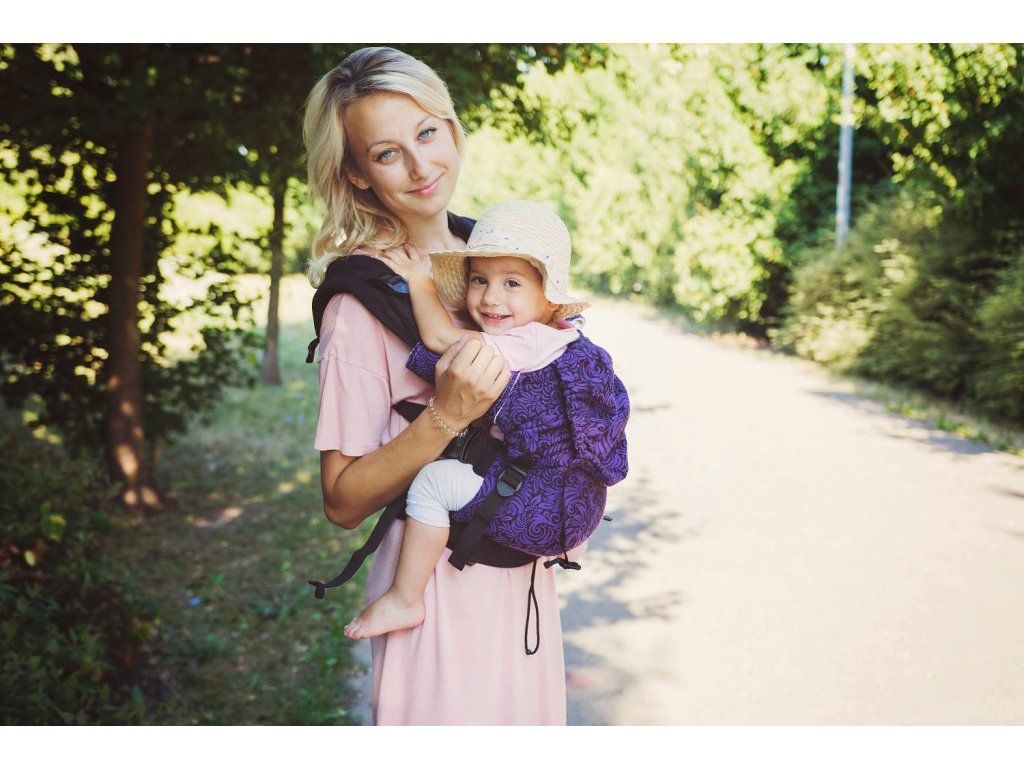 V horní části je zádová opěrka volně navlečená na ramenní popruhy - díky tomu ji lze plynule vytahovat výš nebo níž podle aktuální potřeby. Pokud miminko usne, vytáhnete mu opěrku jednoduše nad hlavu a tím ji zajistíte proti náhlému záklonu. Při nošení větších dětí na zádech je pak možné opěrku zajistit ve zvolené výšce pomocí všitých schovaných karabinek. Minimální výška zádové opěrky je cca 32 cm, maximální pak 52 cm.