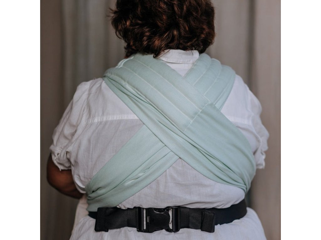 Měkký bederní pás tohoto nosítka se zapíná pomocí bezpečnostní přezky, která se velmi snadno dotahuje, a je vhodné od konfekční velikost XS po XXL. Jeho ramenní popruhy jsou široké přibližně jako polovina šířky samotného šátku a do poloviny šíře měkce polstrované. Křížením popruhů přes zadeček dítěte můžete ještě zvýšit nosnost a pohodlnost při nošení těžších dětí. Velké oblibě se těší i u tatínků, kteří oceňují snadné nasazení nosítka.