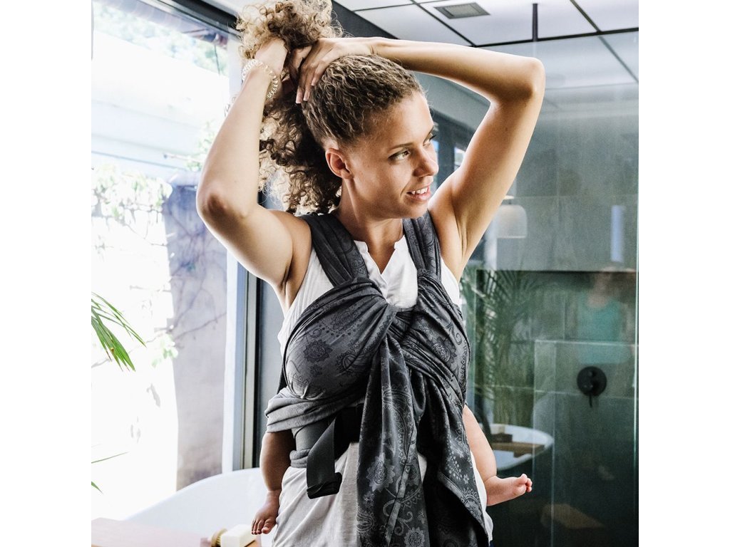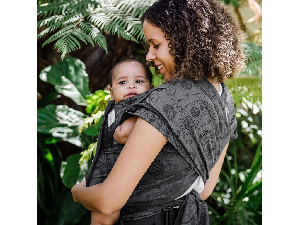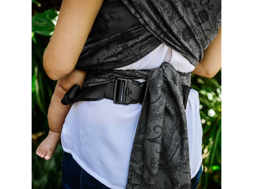 Měkký bederní pás tohoto nosítka se zapíná pomocí bezpečnostní přezky, která se velmi snadno dotahuje, a je vhodné od konfekční velikost XS po XXL. Jeho ramenní popruhy jsou široké přibližně jako polovina šířky samotného šátku a do poloviny šíře měkce polstrované. Křížením popruhů přes zadeček dítěte můžete ještě zvýšit nosnost a pohodlnost při nošení těžších dětí. Velké oblibě se těší i u tatínků, kteří oceňují snadné nasazení nosítka.