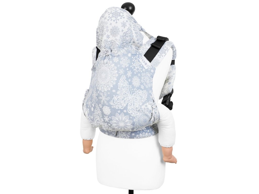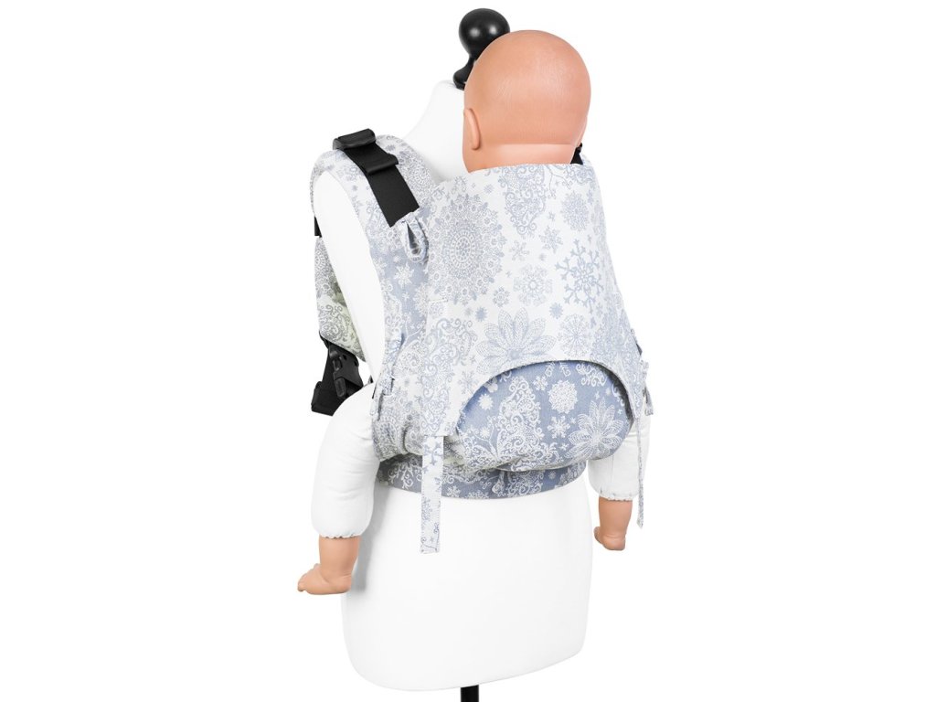 Všechna nosítka značky Fidella jsou rostoucí, lze tedy plynule regulovat šířku a výšku zádové opěrky vzhledem k velikosti dítěte pomocí šňůrek ze šátku.