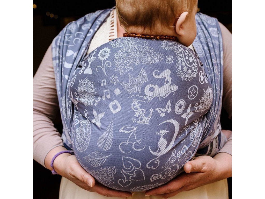 Šířka 80 cm pak umožňuje šátek využít i na větší děti, především při vrstveném úvazu. Šátek Fidella má klasický tvar kosodélníku a dvojitě zaobroubené lemy.