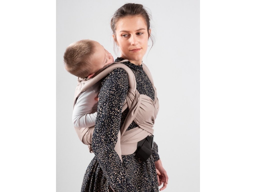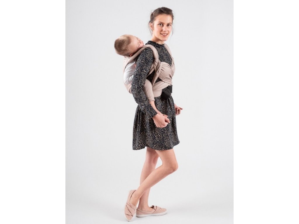 Nosítko má bederní pás s přezkou, kde můžete nastavit výšku i šířku současně a je doplněno o dlouhé ramenní popruhy, částečně polstrované pro větší pohodlí.