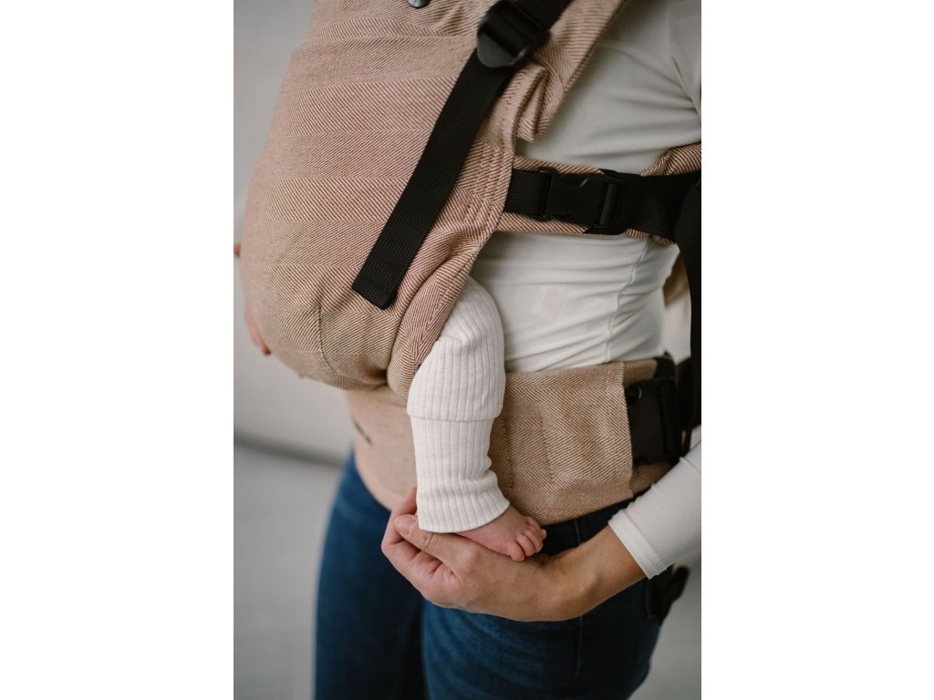 Nosítko disponuje ergonomicky tvarovaným, středně tvrdým a 8mm tenkým bederním pásem , který si s přehledem poradí i s těžšími dětmi. Pro malé děti jsou na bederním pásu, v dolní části zádové opěrky, umístěné speciální přezky, díky nimž docílíte lepšího zakulacení a podsazení Vašeho miminka, tyto přezky jsou na modelu 2024 odnímatelné, jsou umístěné pod bederním pásem a na boku tak nepřekážejí a netlačí. Na zapínání bederního pásu nechybí jistící gumička proti samovolnému rozepnutí.