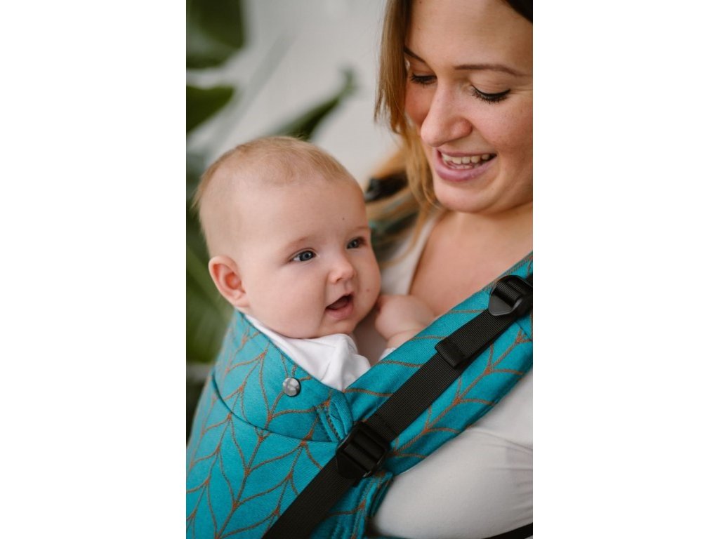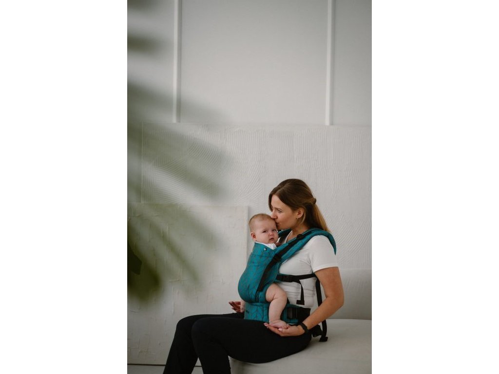 Díky odepínacím ramenním popruhům jde nosítko snadno nastavit z klasického nošení na verzi s křížením. Ramenní popruhy jsou příjemně polstrované, vybavené kolejničkou, pomocí níž velmi snadno nastavíte výšku magnetické mezilopatkové spony na zádech.