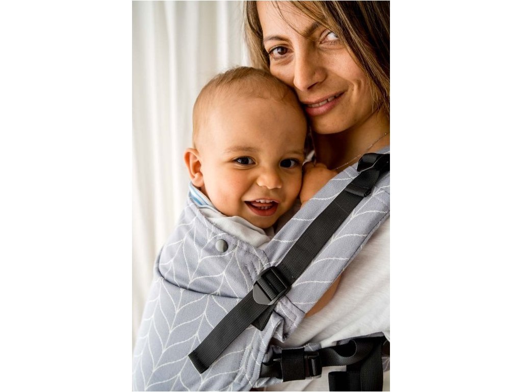 Díky odepínacím ramenním popruhům jde nosítko snadno nastavit z klasického nošení na verzi s křížením. Ramenní popruhy jsou příjemně polstrované, vybavené kolejničkou, pomocí níž velmi snadno nastavíte výšku mezilopatkové spony na zádech.