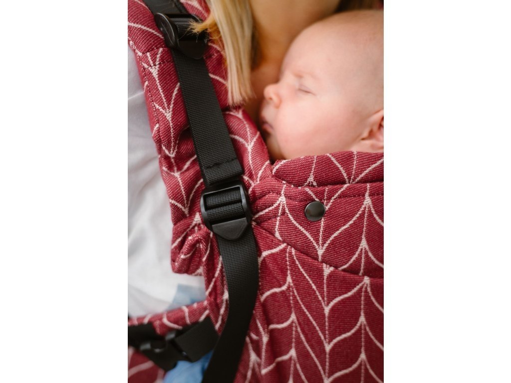 Díky odepínacím ramenním popruhům jde nosítko snadno nastavit z klasického nošení na verzi s křížením. Ramenní popruhy jsou příjemně polstrované, vybavené kolejničkou, pomocí níž velmi snadno nastavíte výšku magnetické mezilopatkové spony na zádech.
