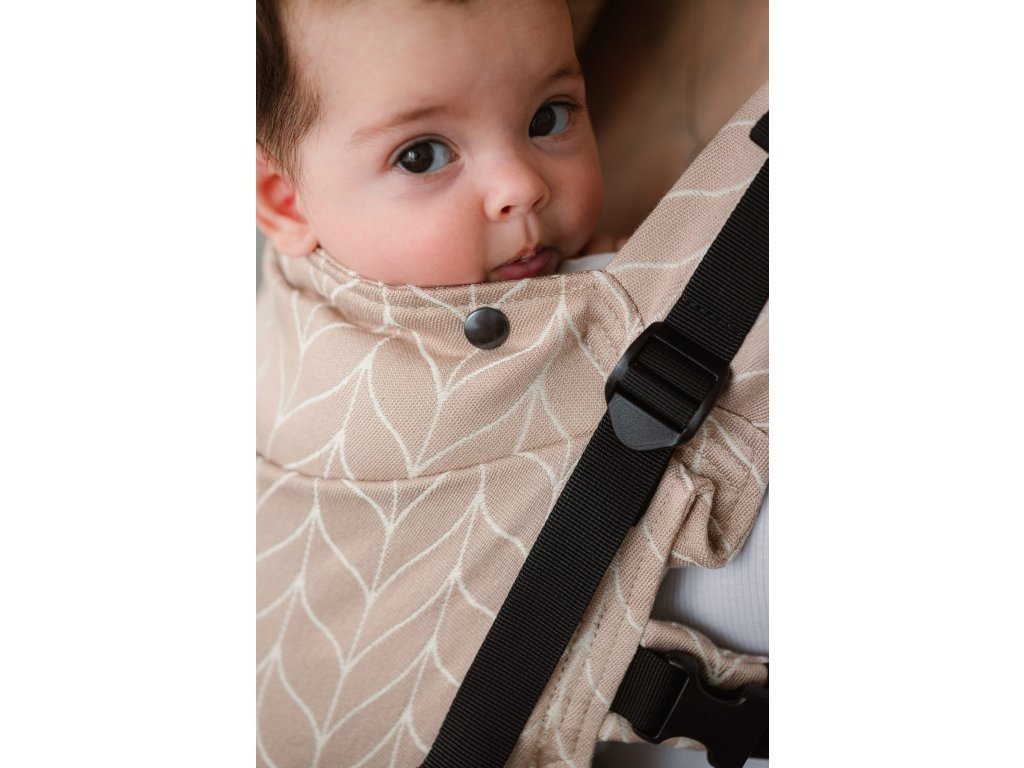 Díky odepínacím ramenním popruhům jde nosítko snadno nastavit z klasického nošení na verzi s křížením. Ramenní popruhy jsou příjemně polstrované, vybavené kolejničkou, pomocí níž velmi snadno nastavíte výšku magnetické mezilopatkové spony na zádech.