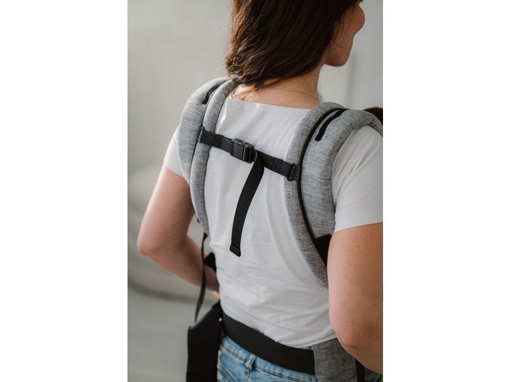 Díky odepínacím ramenním popruhům jde nosítko snadno nastavit z klasického nošení na verzi s křížením. Ramenní popruhy jsou příjemně polstrované, vybavené kolejničkou, pomocí níž velmi snadno nastavíte výšku magnetické mezilopatkové spony na zádech.