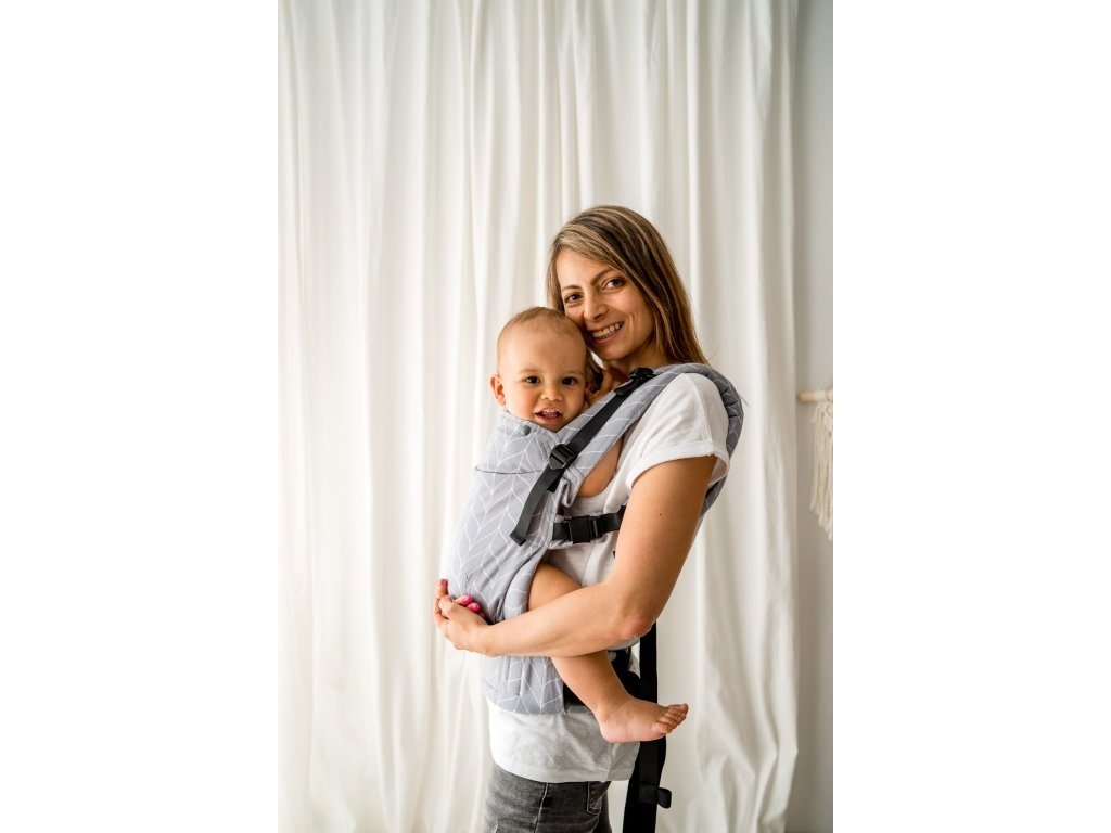 Díky odepínacím ramenním popruhům jde nosítko snadno nastavit z klasického nošení na verzi s křížením. Ramenní popruhy jsou příjemně polstrované, vybavené kolejničkou, pomocí níž velmi snadno nastavíte výšku magnetické mezilopatkové spony na zádech.