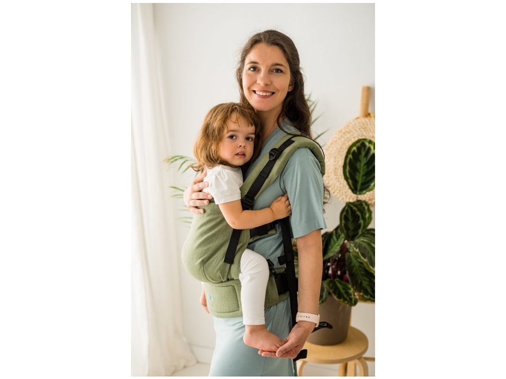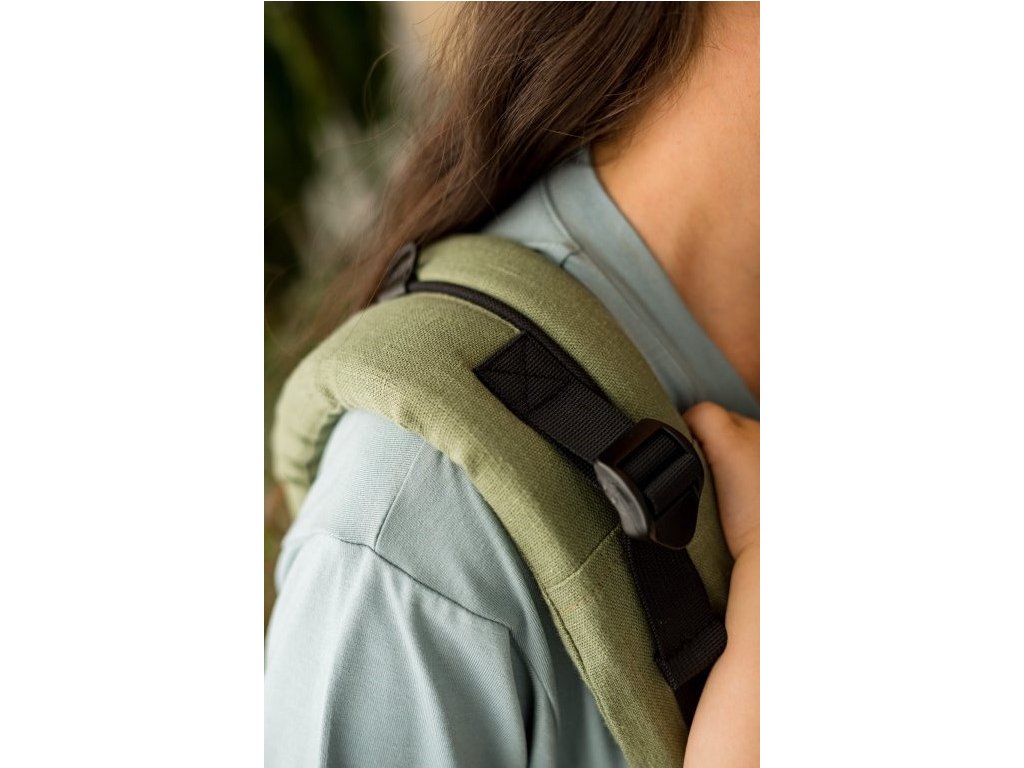 Díky odepínacím ramenním popruhům jde nosítko snadno nastavit z klasického nošení na verzi s křížením. Ramenní popruhy jsou příjemně polstrované, vybavené kolejničkou, pomocí níž velmi snadno nastavíte výšku mezilopatkové spony na zádech.