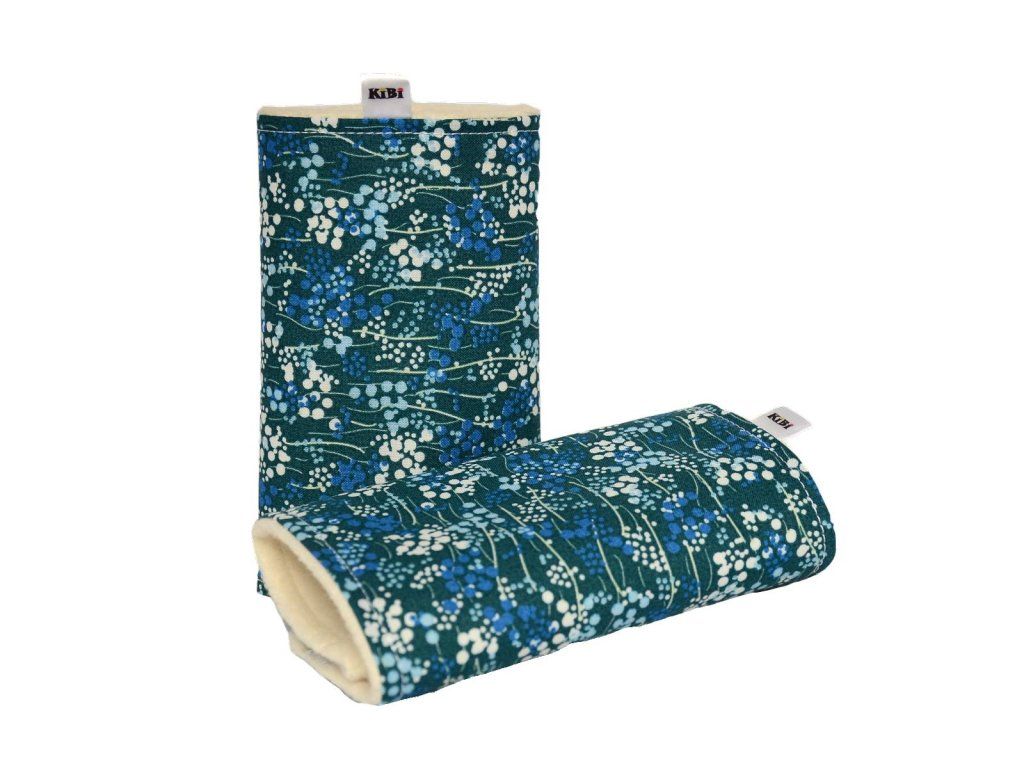 Chrániče ramenních popruhů KiBi jsou vyrobeny z kombinace dvou materiálů. Na svrchní straně designové 100% bavlněné plátno, stejné jako na nosítku. Na spodní straně pak 100% biobavlněný beránek, extra příjemný a nasákavý materiál. Slintáčky můžete používat oboustranně, zapnout je buď designovou nebo beránkovou stranou nahoru.