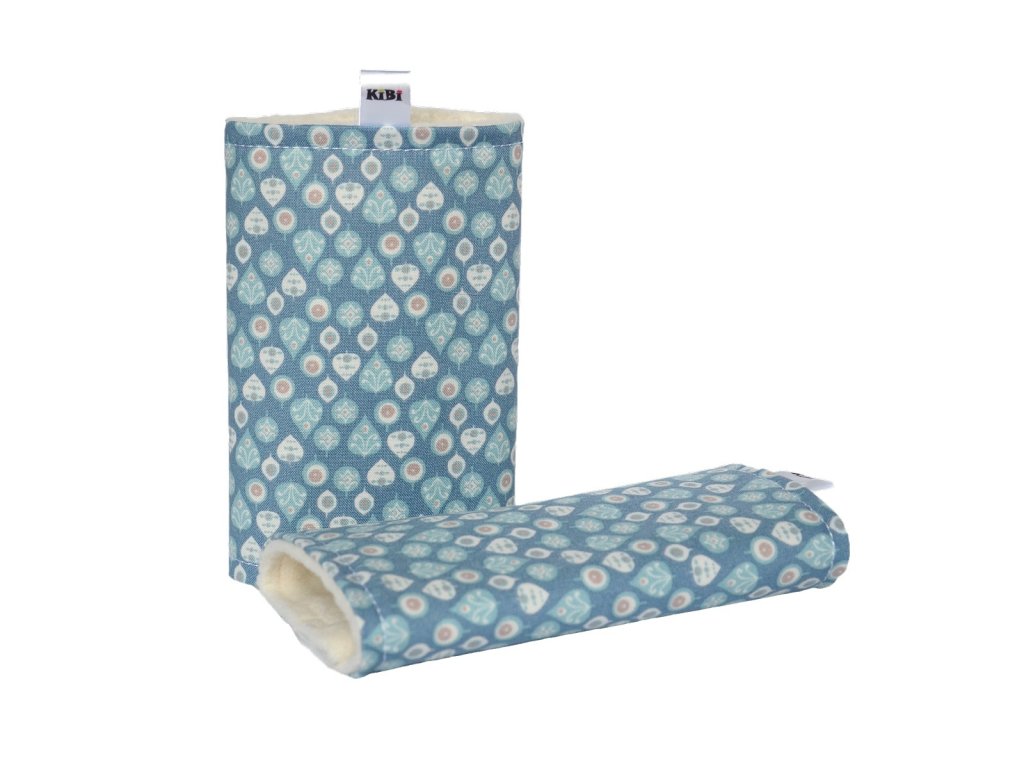 Chrániče ramenních popruhů KiBi jsou vyrobeny z kombinace dvou materiálů. Na svrchní straně designové 100% bavlněné plátno, stejné jako na nosítku. Na spodní straně pak 100% biobavlněný beránek, extra příjemný a nasákavý materiál. Slintáčky můžete používat oboustranně, zapnout je buď designovou nebo beránkovou stranou nahoru.