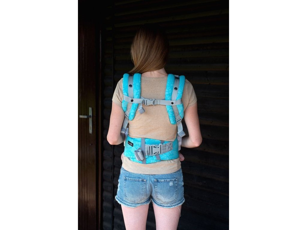 Bederní pás je pevný a široký. Ve spojení s extendorem který se umisťuje na bedra rodiče poskytuje potřebnou oporu zejména ženám krátce po porodu.