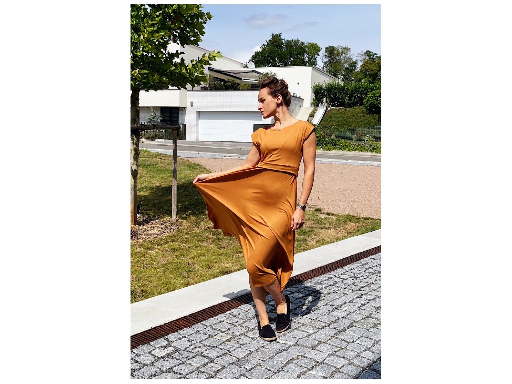 Tyto šaty se širokou sukní a s KIMONO rukávem skvěle zakryjí poporodní bříško i boky a naopak vyzdvihnou ty hezké křivky.