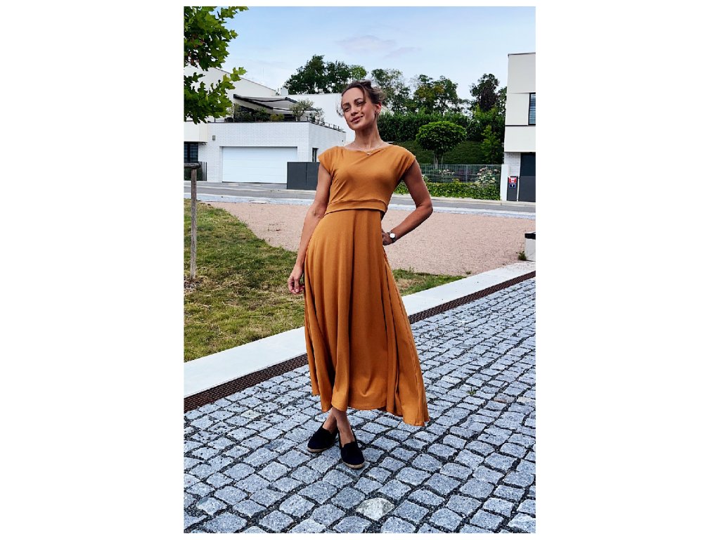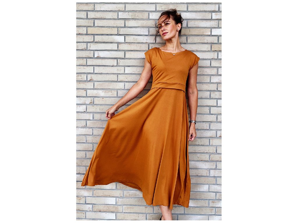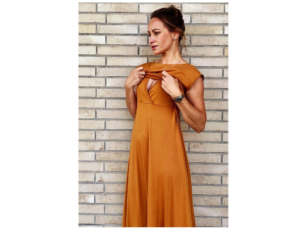 Krásná Mamka viskózové kojicí Midi šaty Bronze