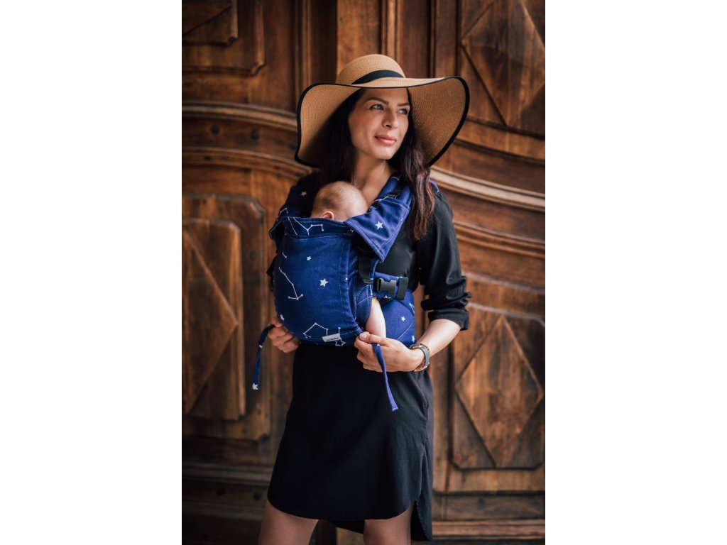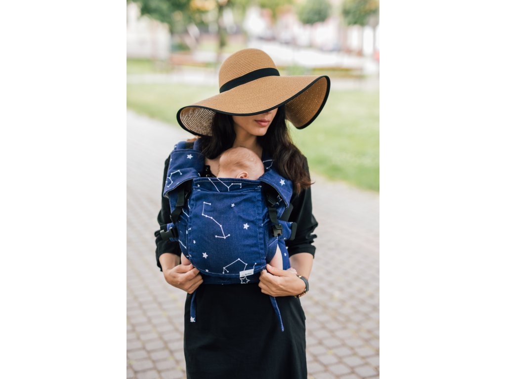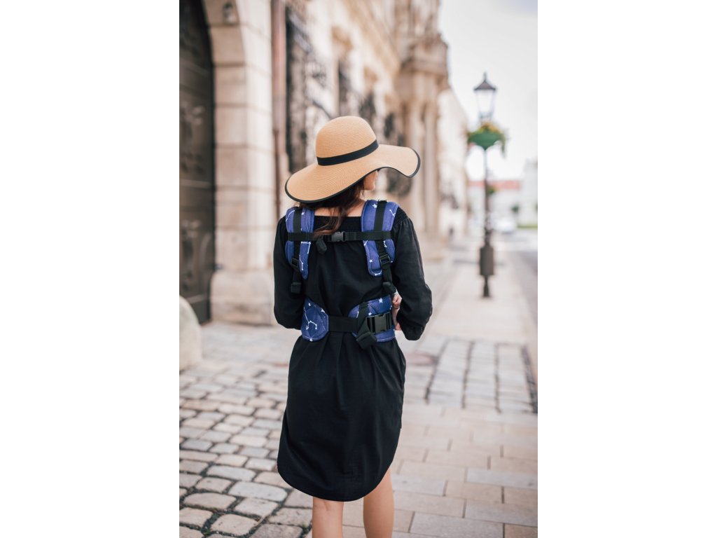 Nosítko je plně nastavitelné na míru děťátka. Šířka nosítka se nastavuje velmi jednoduše pomocí stahovacích šňůrek umístěných na přední straně zádové opěrky těsně nad bederním pásem. Šňůrky stačí stáhnout podle velikosti vašeho miminka a zavázat na uzel.