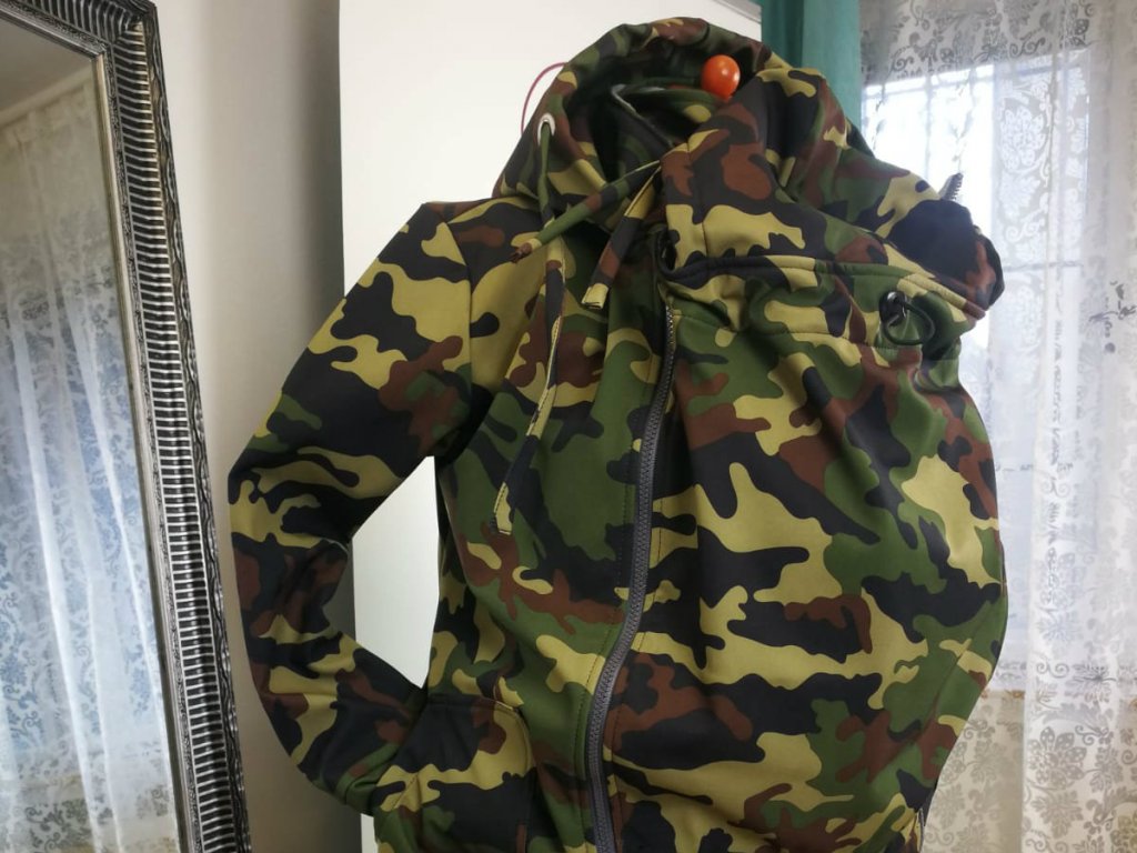 Bunda 3 v 1: nošení na břiše i na zádech, bunda se může využít i k běžnému nošení bez vsadky.