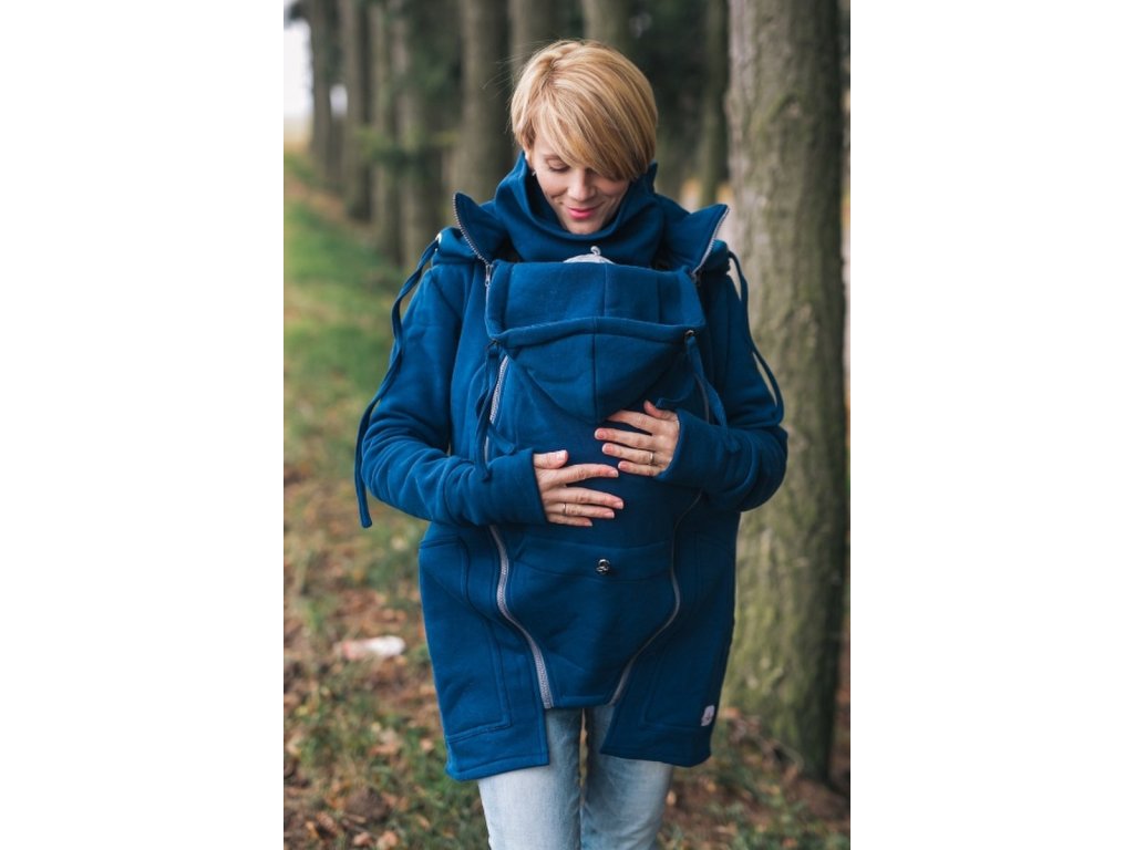 Tuto mikinu můžete nosit s dítětem, ale i bez něj. Vsadka pro dítě je vyrobena z měkkoučké teplákoviny. Díky tomu je krásně přizpůsobivá a velmi příjemná. Součástí této varianty 4 v 1 je vsadka určená pro nošení na břiše i na zádech a těhotenská vsadka, která se perfektně přizpůsobí rostoucímu bříšku.