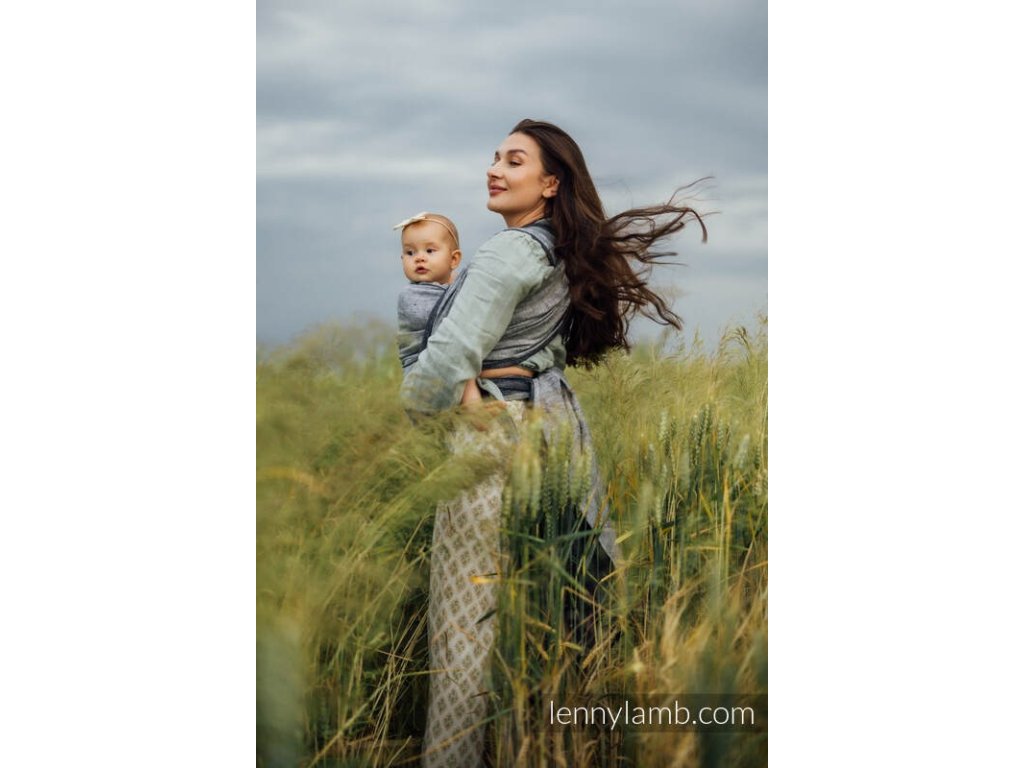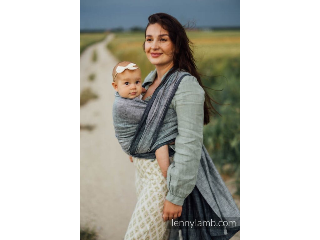 LennyLamb Arrow Wave je vyroben ze 100% lnu, je velmi tenký a pevný. Z tohoto důvodu ho nedoporučujeme na novorozené miminko, je vhodný spíše od 4 měsíců a s přehledem si poradí i s tříletým nošencem ve vícevrstvém úvazu, proto se dá tento šátek označit za šátek na celé nosící období.