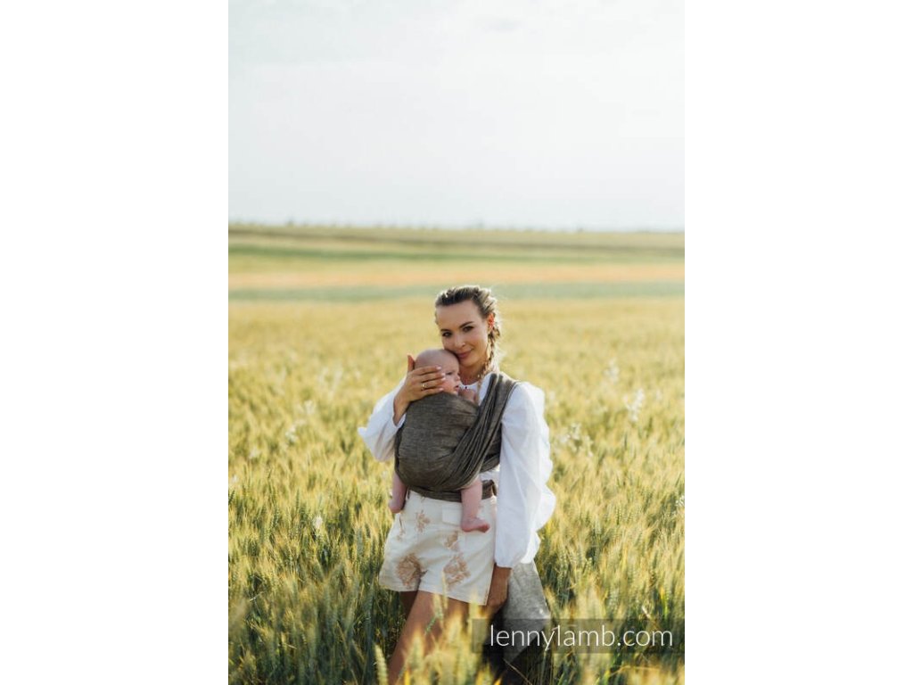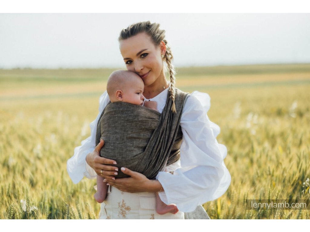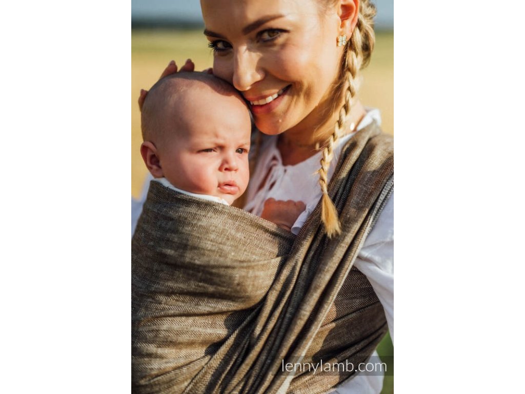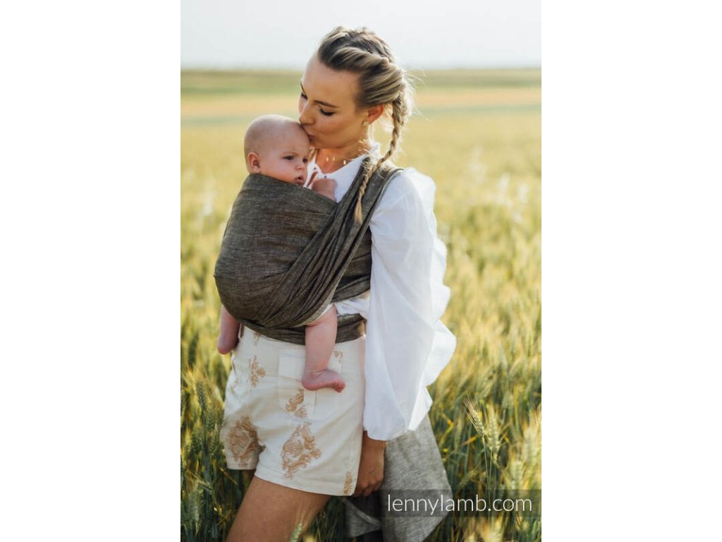 LennyLamb Arrow Wood je vyroben ze 100% lnu, je velmi tenký a pevný. Z tohoto důvodu ho nedoporučujeme na novorozené miminko, je vhodný spíše od 4 měsíců a s přehledem si poradí i s tříletým nošencem ve vícevrstvém úvazu, proto se dá tento šátek označit za šátek na celé nosící období.