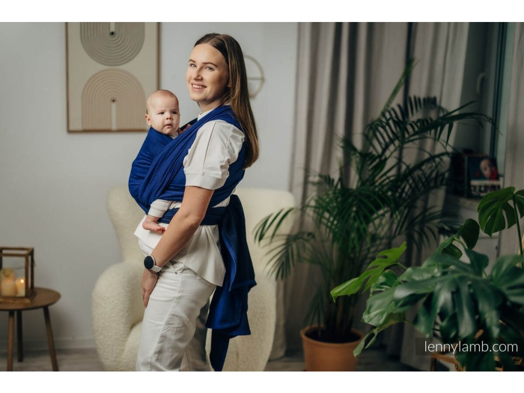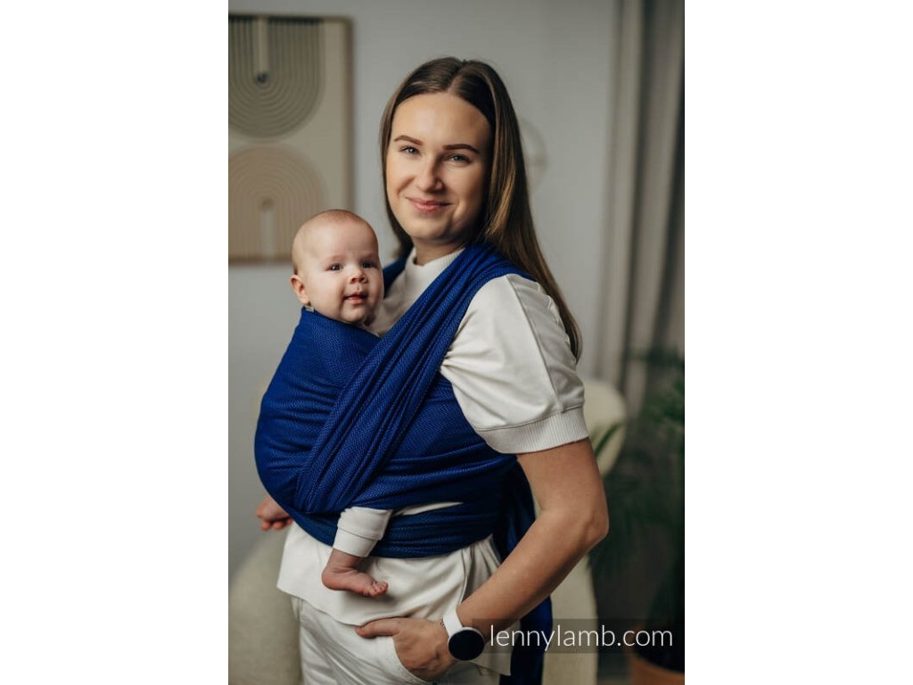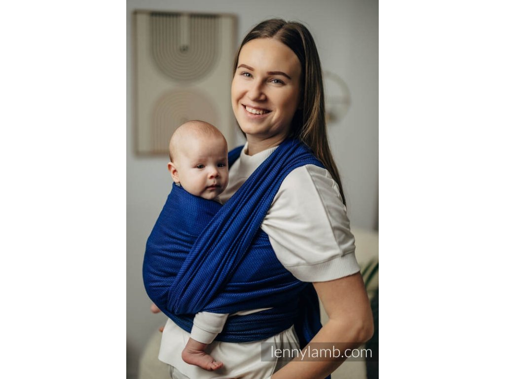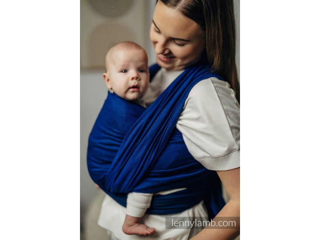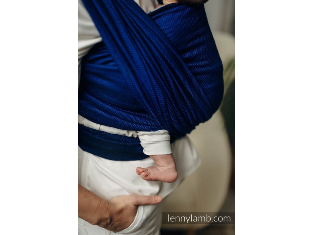 LennyLamb Basic Line Herringbone Cobalt je středně tenký celobavlněný šátek, který je určen pro nošení dětí zhruba od 2 měsíců, snadno si poradí s dvouletým nošencem ve vícevrstveném úvazu, proto se dá šátek zařadit do kategorie na celé nosící období.