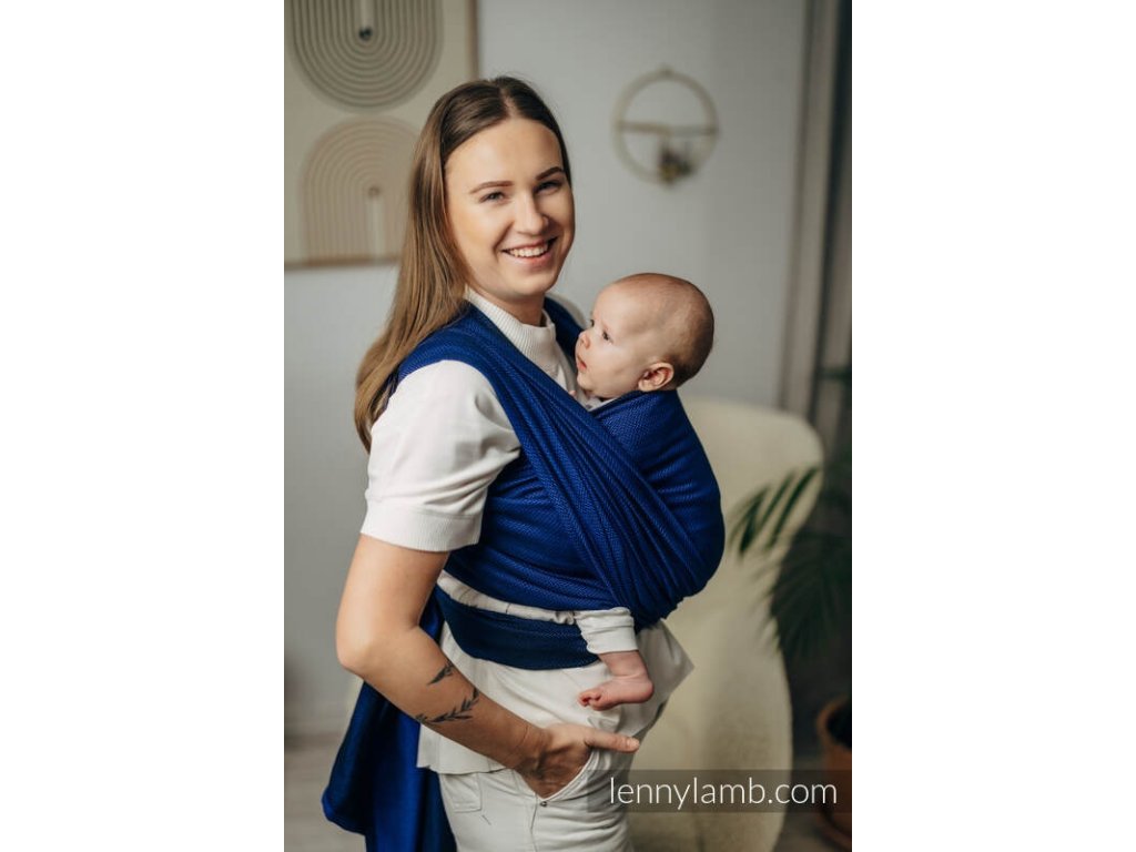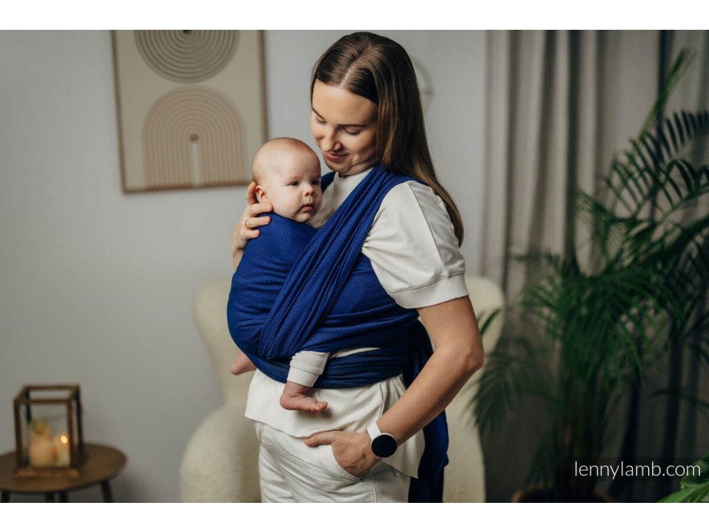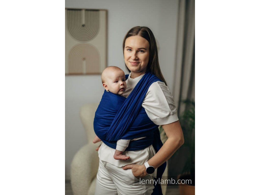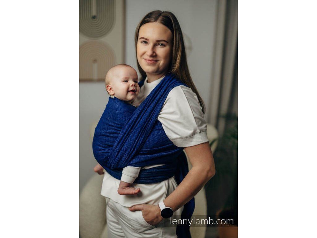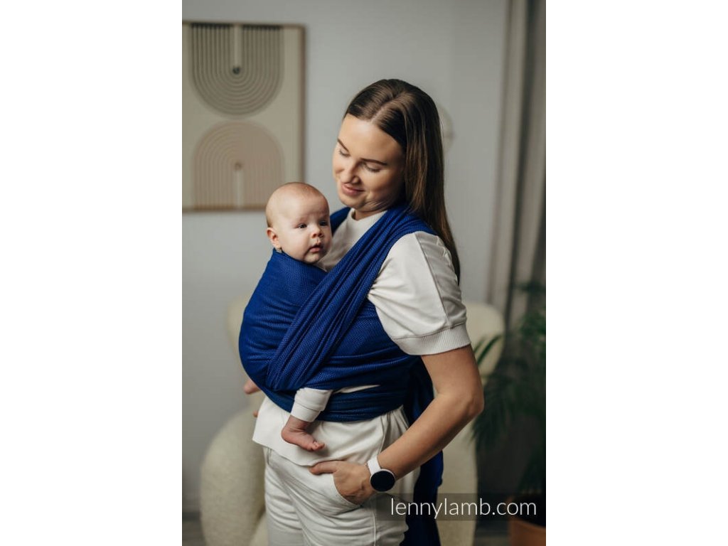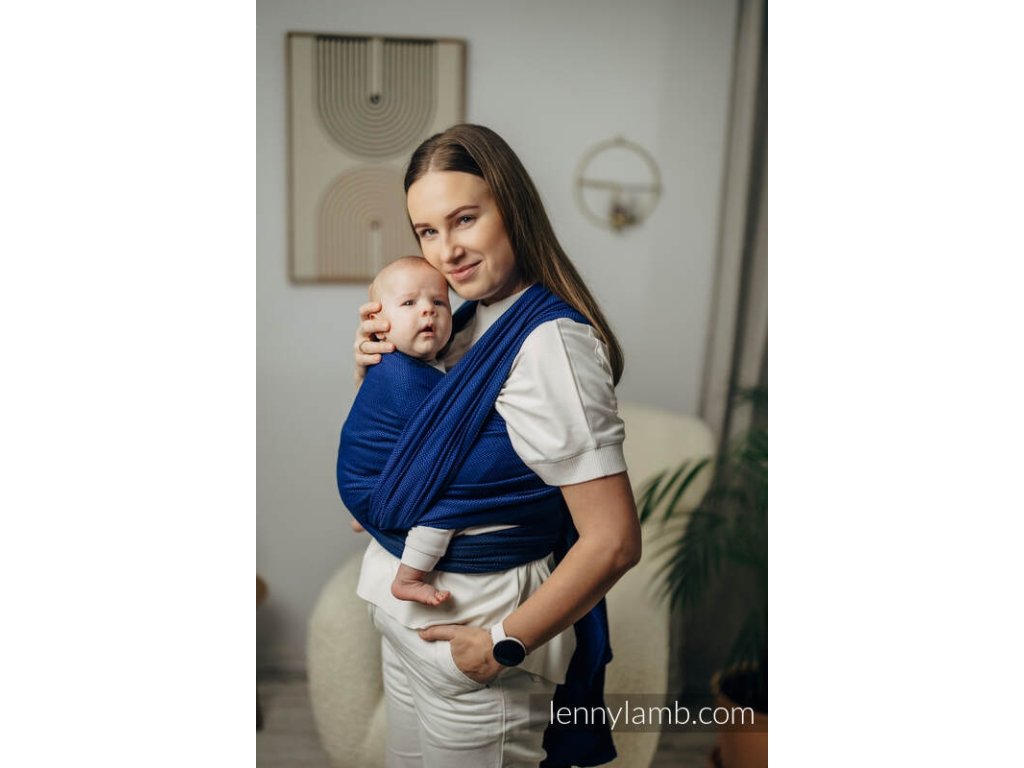 LennyLamb Basic Line Herringbone Cobalt je středně tenký celobavlněný šátek, který je určen pro nošení dětí zhruba od 2 měsíců, snadno si poradí s dvouletým nošencem ve vícevrstveném úvazu, proto se dá šátek zařadit do kategorie na celé nosící období.
