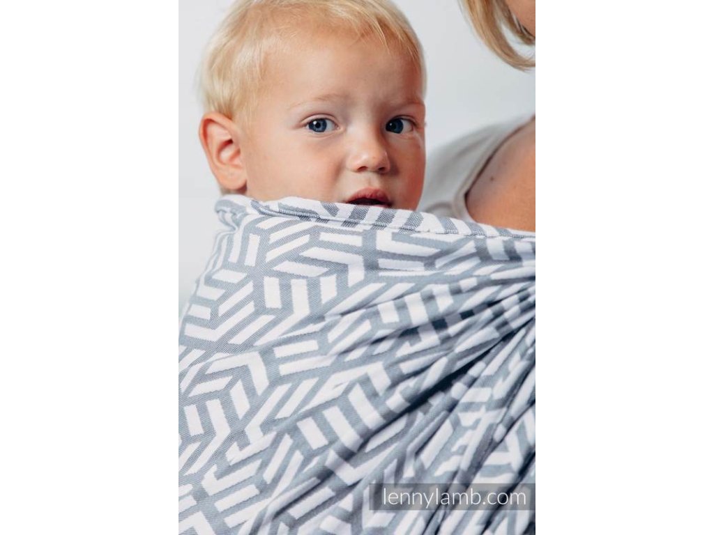 Vazba se příjemně dotahuje, látka je dostatečně pružná a zároveń dostatečně pevná, aby tvořila oporu správnému postavení zad Vašemu dítěti. Látka neprokluzuje, je vzdušná a šátek je velmi dobře nosný. Je to šátek vhodný na celé nosící období.