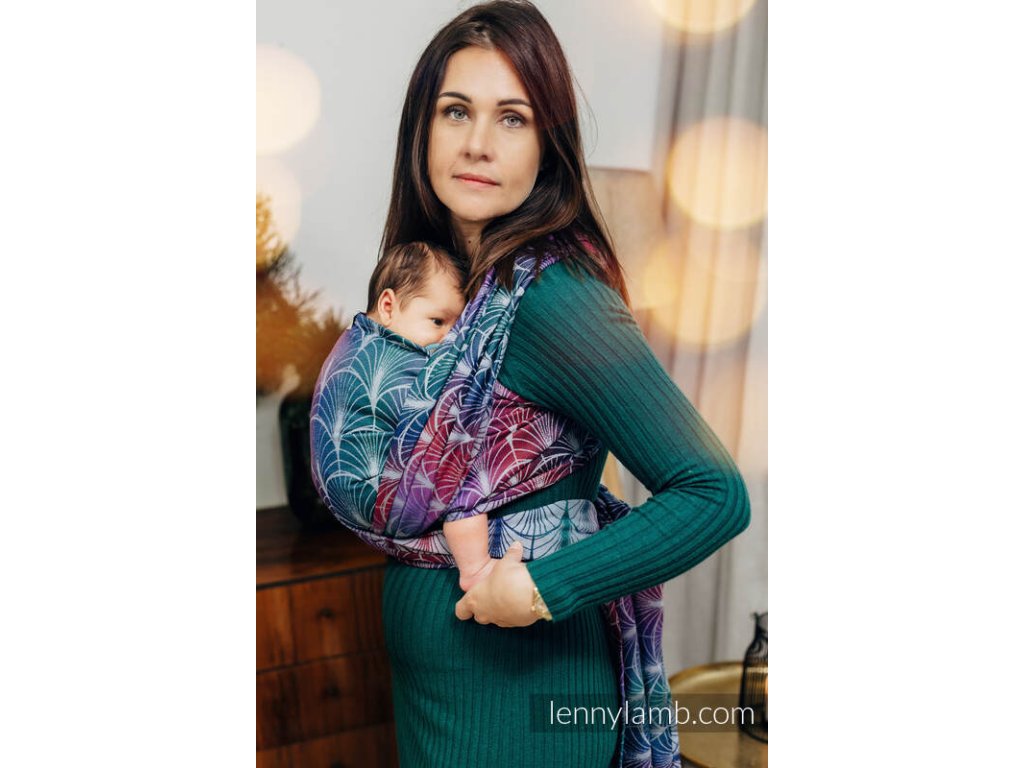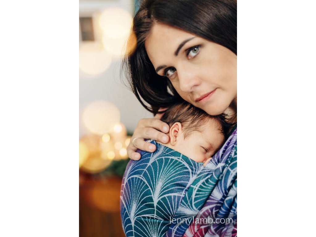 LennyLamb Deco Kingdom je středně tlustý celobavlněný šátek, který je určen pro nošení batolat a velkých dětí zhruba od půl roku, snadno si poradí s tříletým nošencem ve vícevrstveném úvazu, proto se dá šátek zařadit do kategorie na celé nosící období.