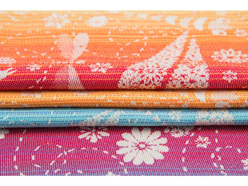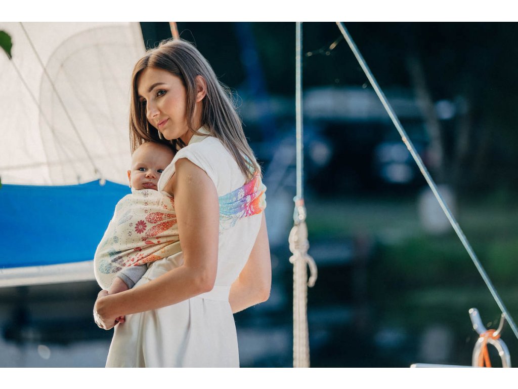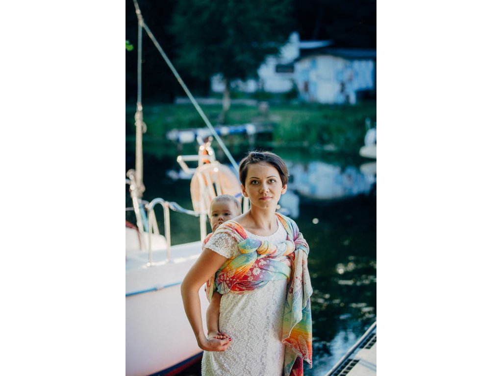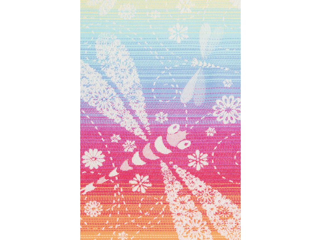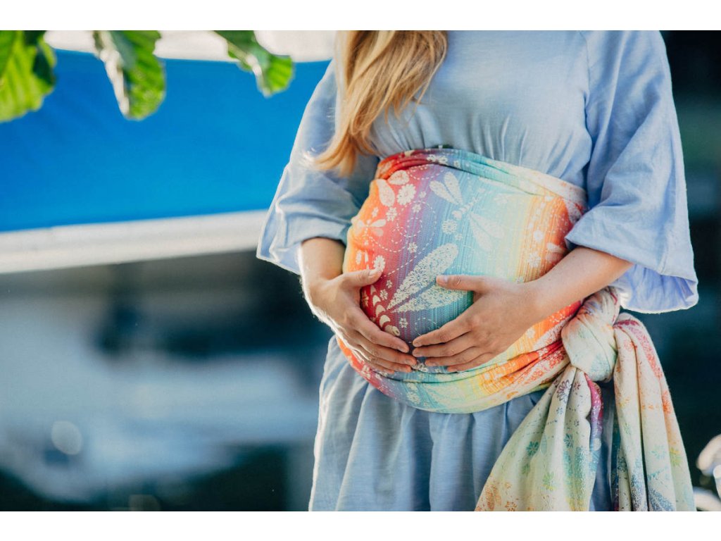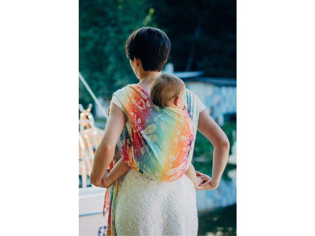 LennyLamb Dragonfly Rainbow je středně tenký celobavlněný šátek, který je určen pro nošení dětí zhruba od 4 měsíců, snadno si poradí s dvouletým nošencem ve vícevrstveném úvazu, proto se dá šátek zařadit do kategorie na celé nosící období.