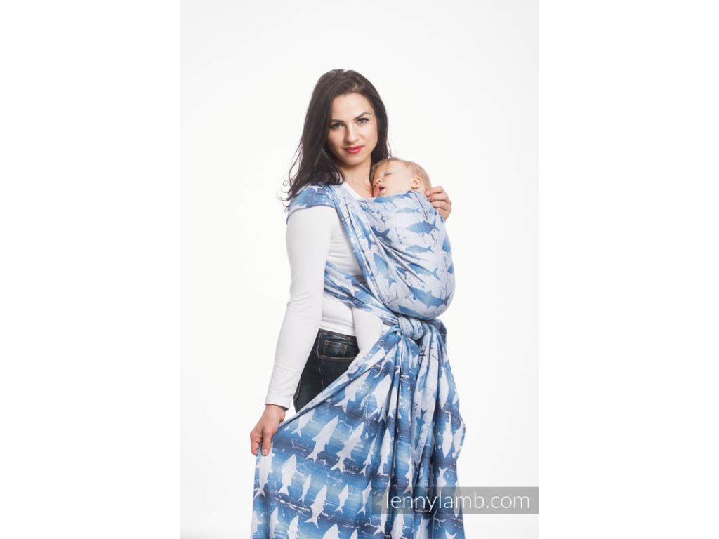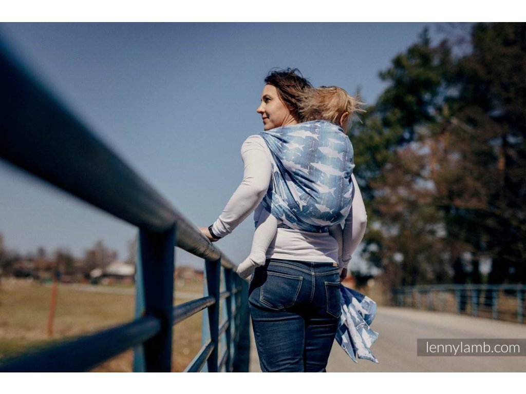 LennyLamb Fish'ka Big Blue je celobavlněný šátek na nošení dětí vhodný pro novorozená miminka. Šátek je tenký, měkký a hebký. Díky své tloušťce je perfektním, cenově dostupným šátkem na letního novorozence. Bude vás provázet zhruba prvním rokem a půl života vašeho miminka. Díky složení se dá označit za téměř bezúdržbový kousek, snadno ho totiž vyperete v pračce a časté praní mu nevadí.