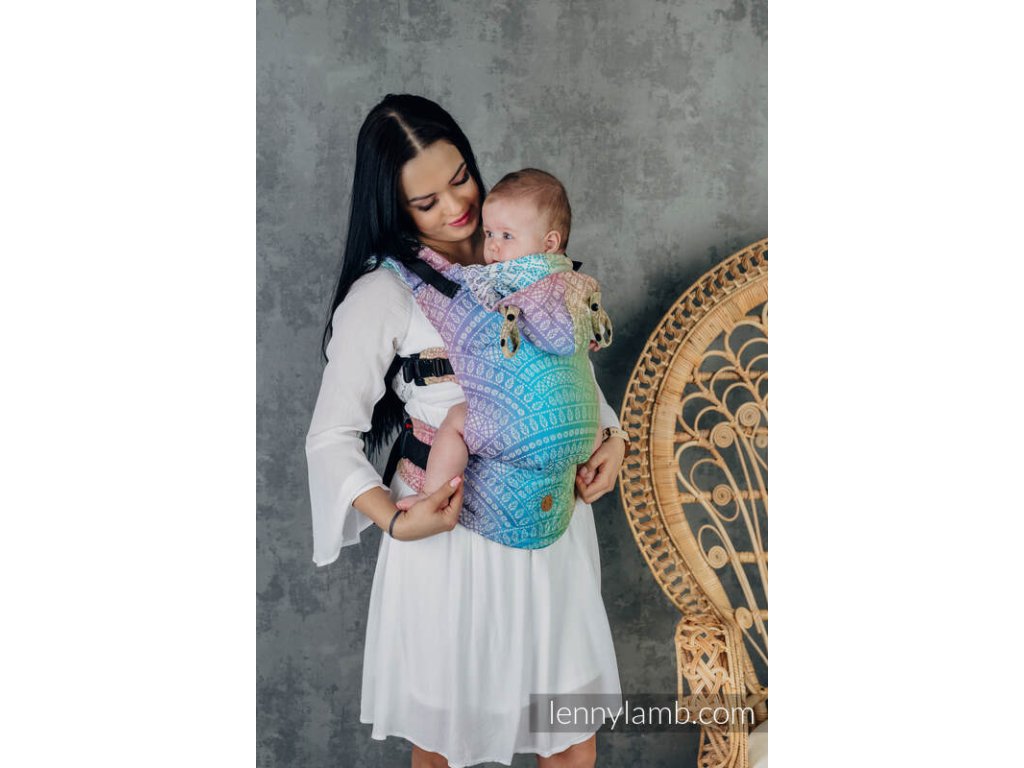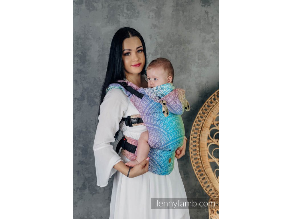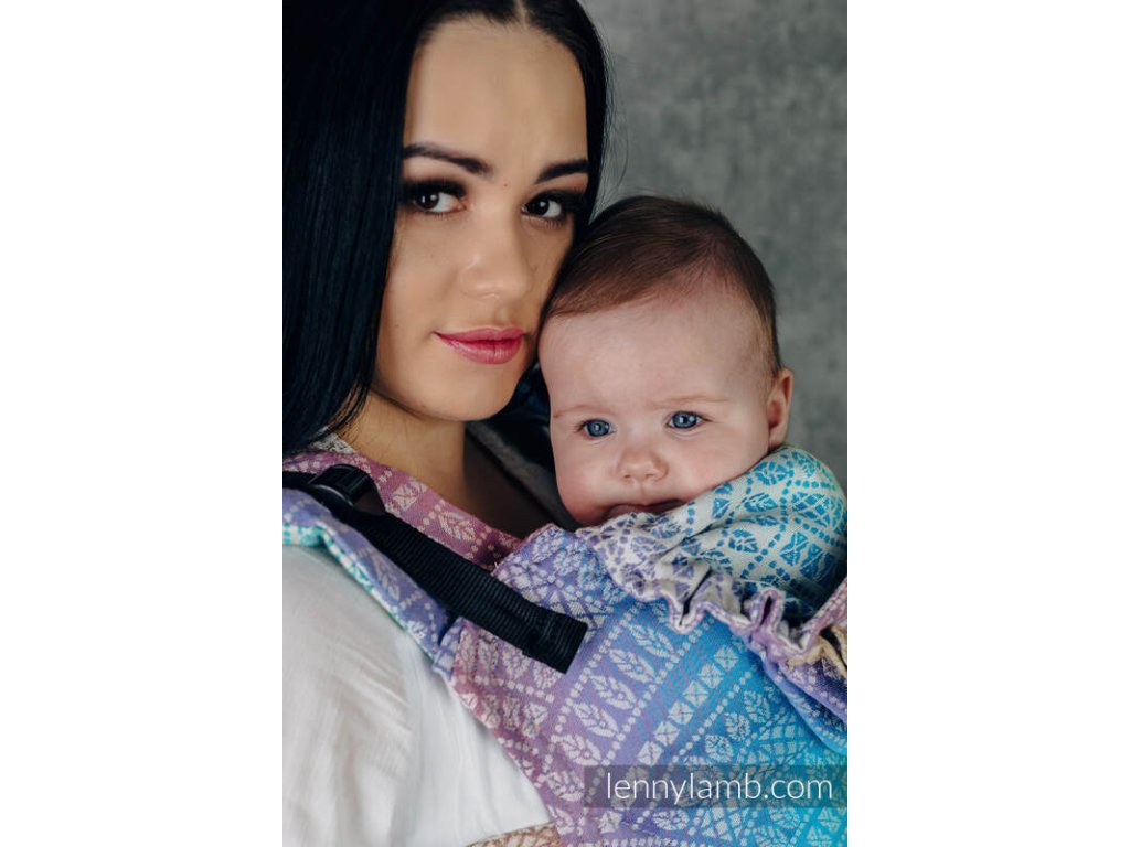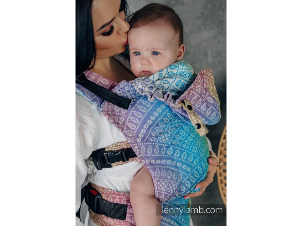 LennyLamb je ušito dle klasického střihu pro nosítka - bederní pás má přezku s bezpečnostní pojistkou, vypolstrované a měkké ramenní popruhy s posunovací sponou. Pohodlná kapucka, která přidrží při spánku či ochrání před větrem či chladem Vaše dítě.