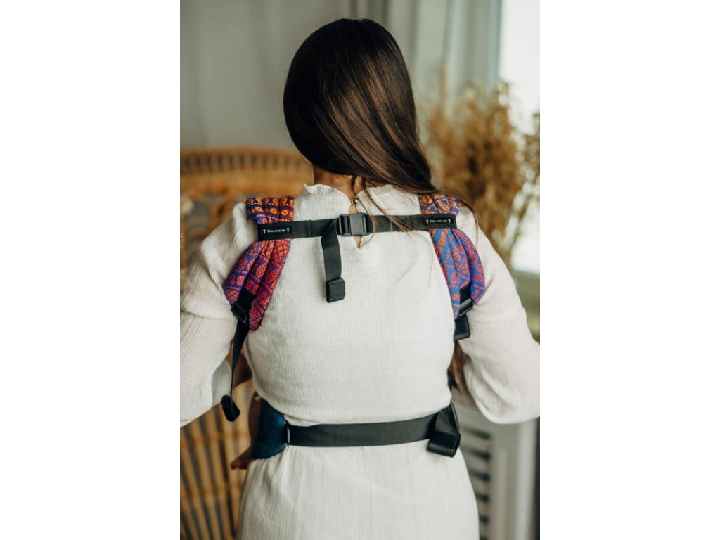 Nosítko nově disponuje magnetickou hrudní přezkou, kterou lze v případě potřeby úplně sundat a získáte tak nosítko, které lze při nošení vepředu zapínat křížem pro ještě větší pohodlí.
