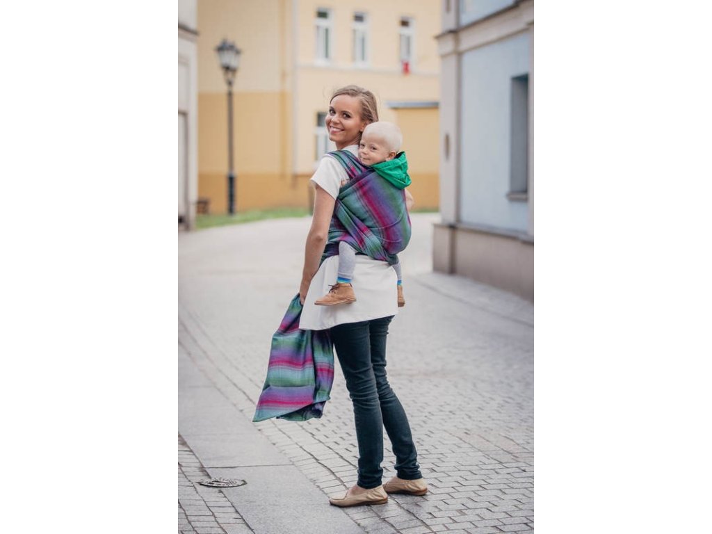 Šátek je tenký, měkký a hebký. Díky své tloušťce je perfektním, cenově dostupným šátkem na novorozence. Bude vás provázet zhruba prvním rokem života vašeho miminka. Díky složení se dá označit za téměř bezúdržbový kousek, snadno ho totiž vyperete v pračce a časté praní mu nevadí.