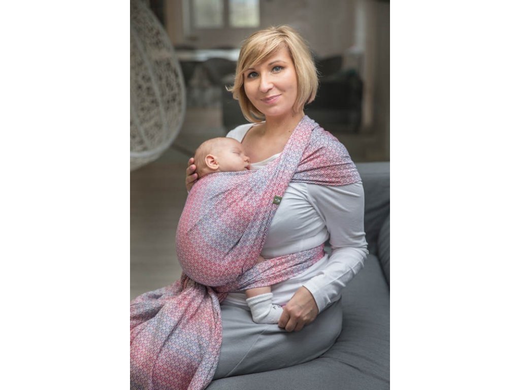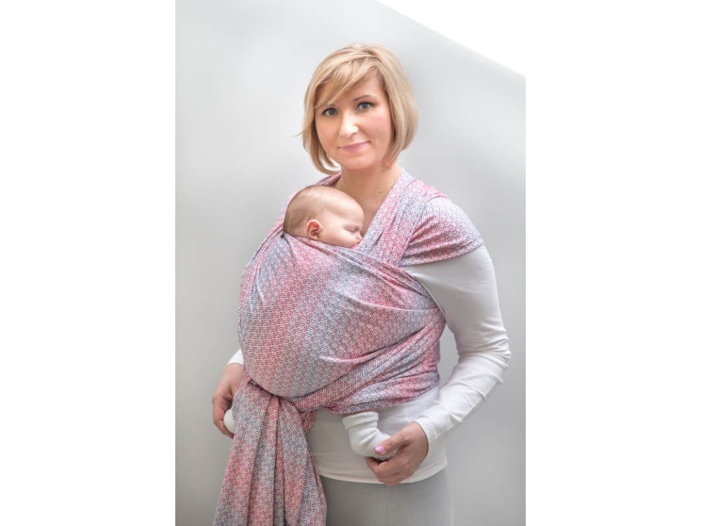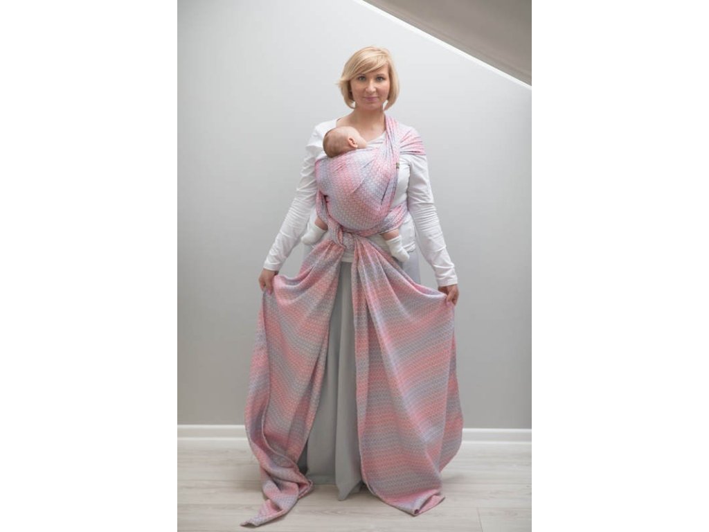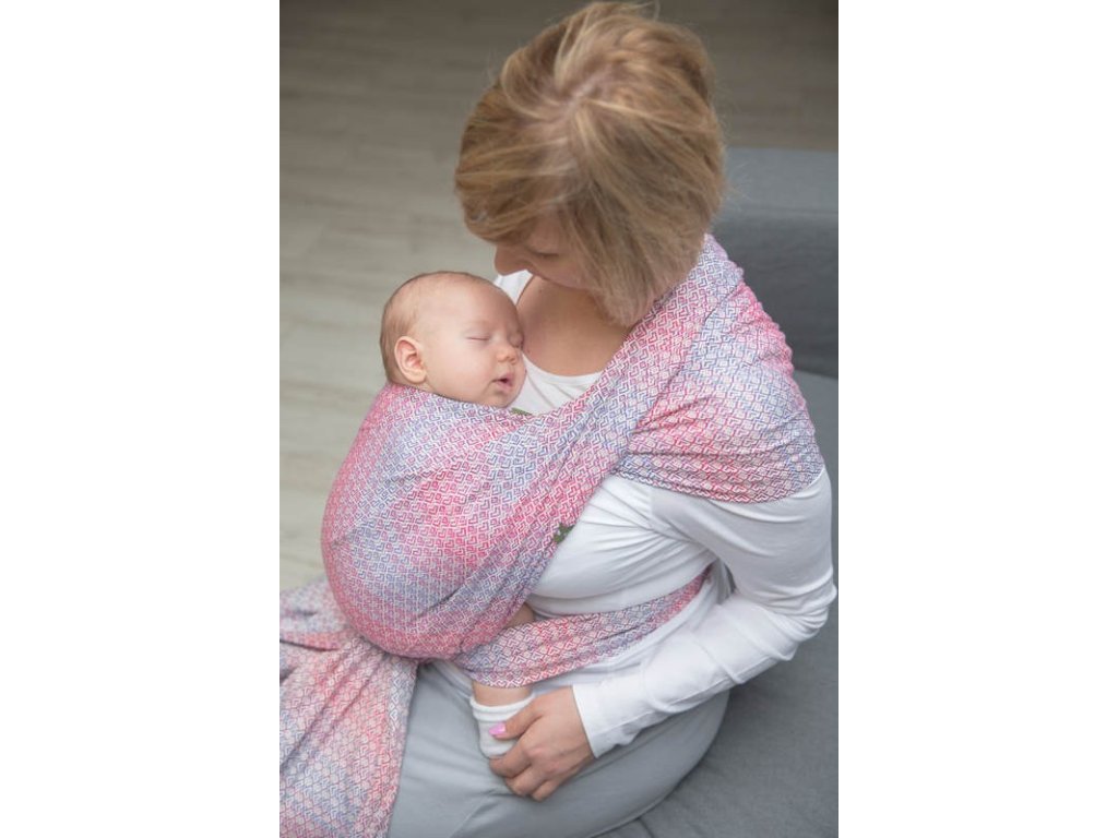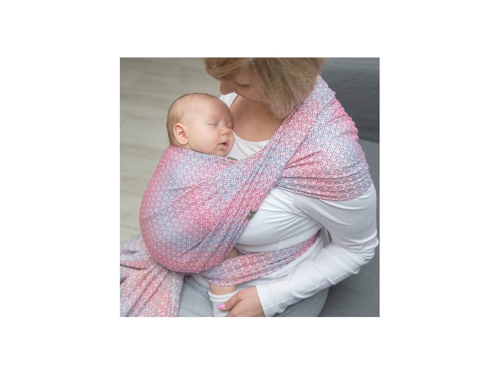 Hladká žakárová vazba se příjemně dotahuje, látka je dostatečně pružná a zároveń dostatečně pevná, aby tvořila oporu správnému postavení zad Vašemu dítěti. Látka neprokluzuje, je vzdušná a šátek je velmi dobře nosný.