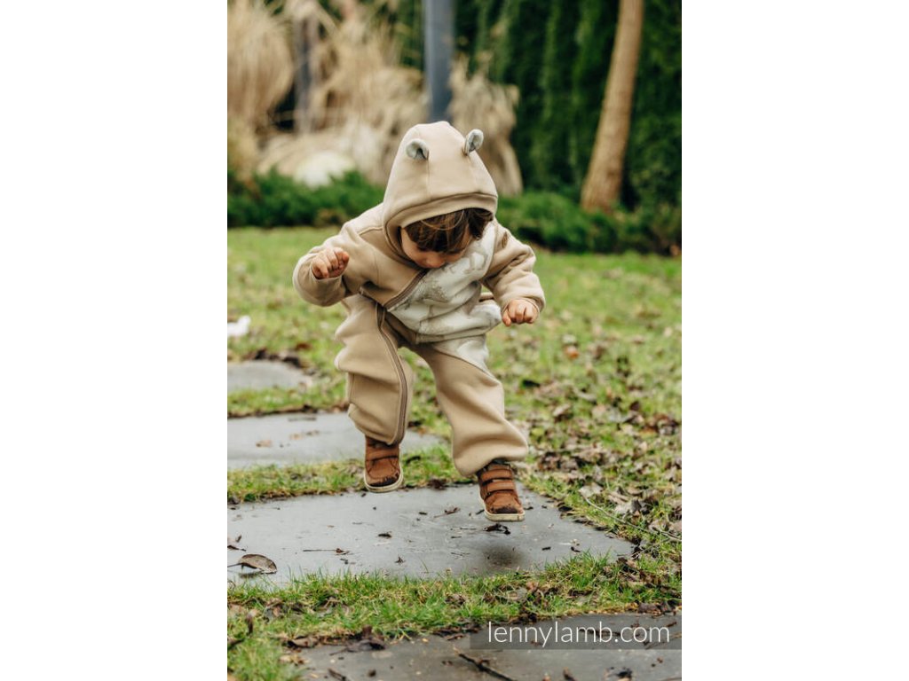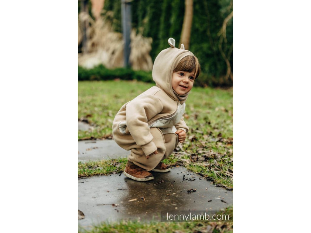 Medvědí overal od LennyLamb je krásná přechodná kombinéza s kapucí. Jeho speciální střih - volný na bocích kojence usnadňuje ukládání dítěte do šátku či nosítka.