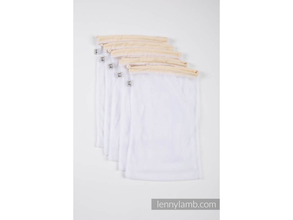 Bavlněné pytlíky LennyLamb jsou ekologickou alternativou klasických jednorázových sáčků. Toto balení obsahuje 5 ks pytlíků vel. L.
