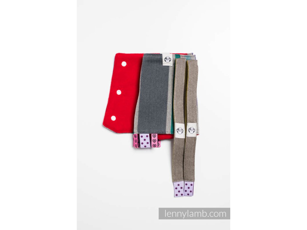 Většina malých dětí se po umístění do nosítka s nadšením zakousne do jeho popruhů. Tyto návleky ochrání před ušpiněním popruhů od slin, ale i zbytků jídla.