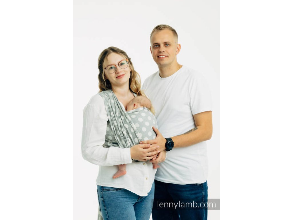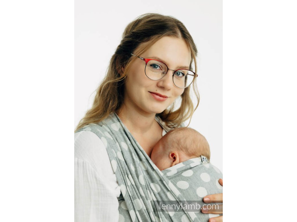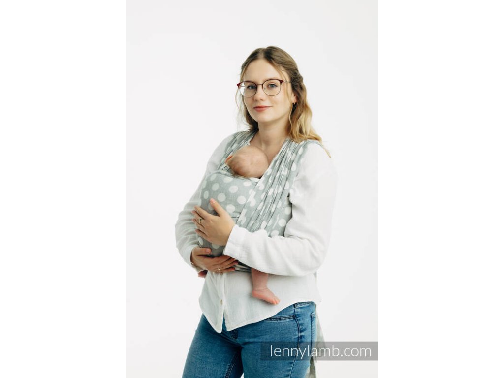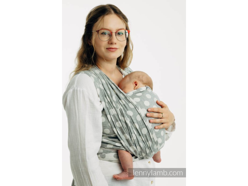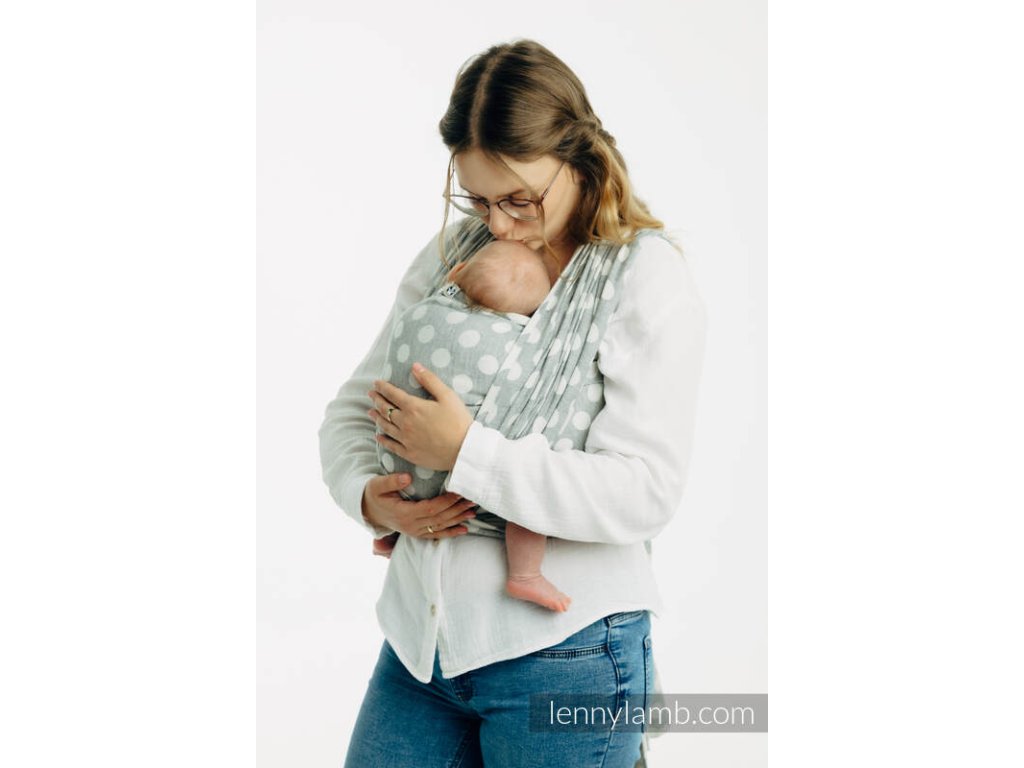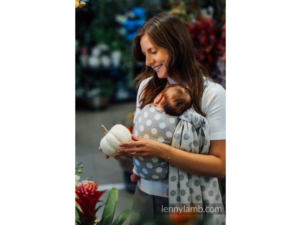 LennyLamb Polka Dots Plop je celobavlněný šátek na nošení dětí, který vhodný pro novorozená miminka. Šátek je tenoučký jako pavučinka, měkký a hebký, proto se ho nemusíte bát použít ani u miminek s nižší porodní váhou než 3,5kg. Díky své tloušťce je perfektním šátkem na letního novorozence. Díky složení se dá označit za téměř bezúdržbový kousek, snadno ho totiž vyperete v pračce a časté praní mu nevadí.