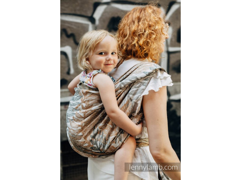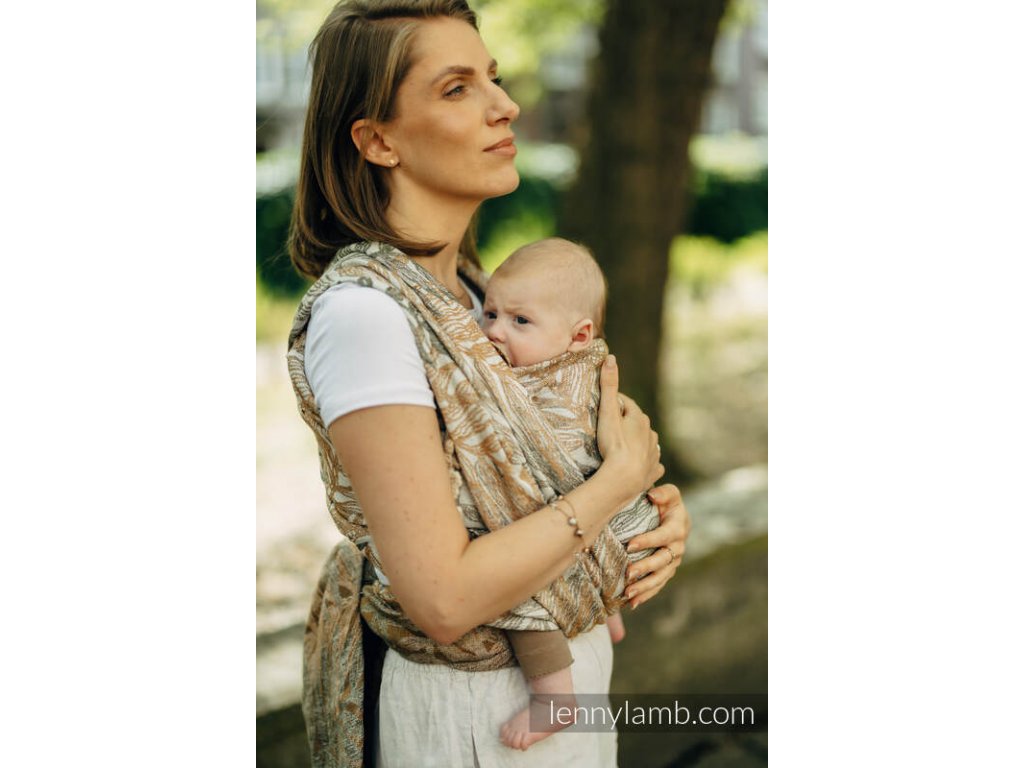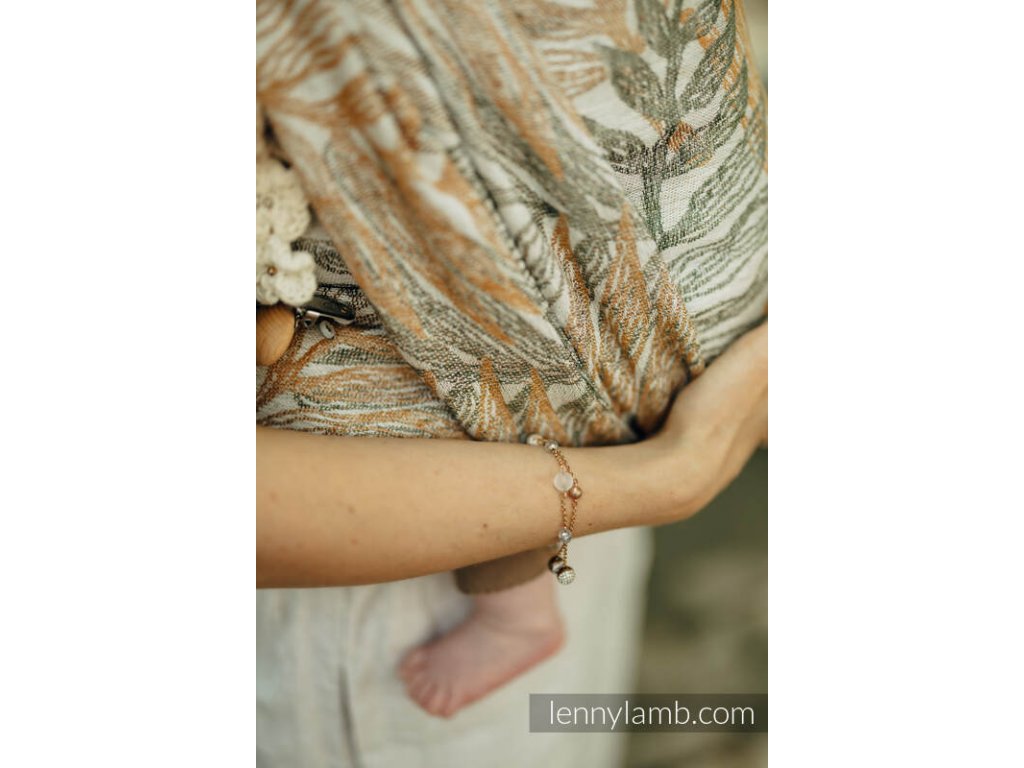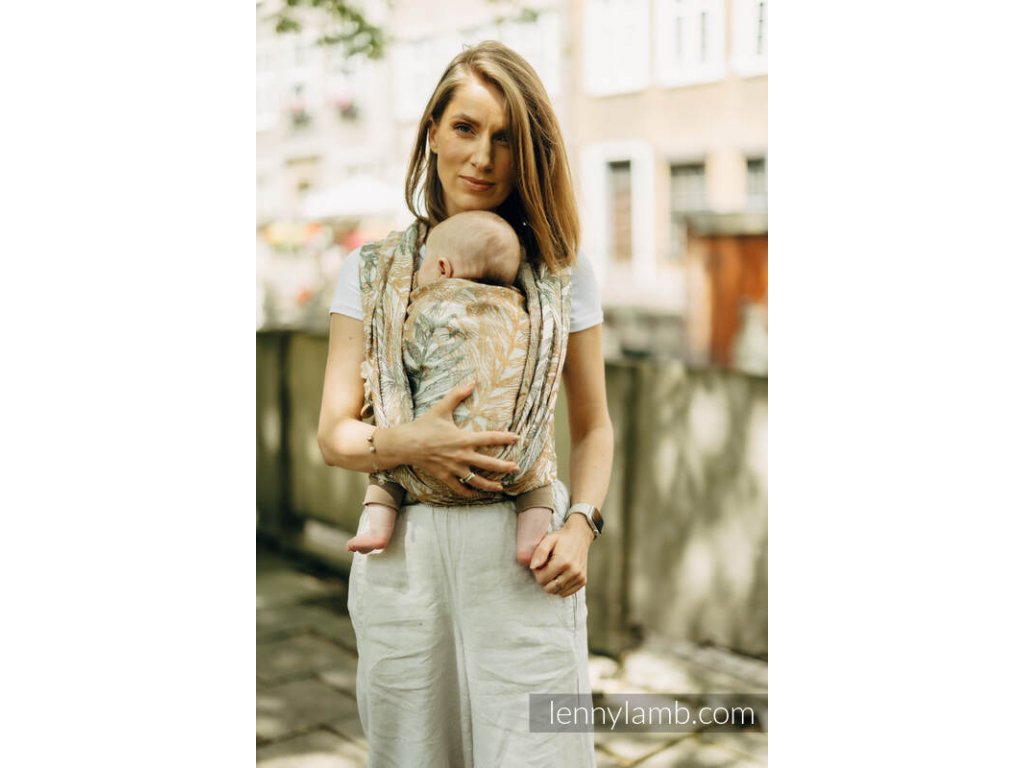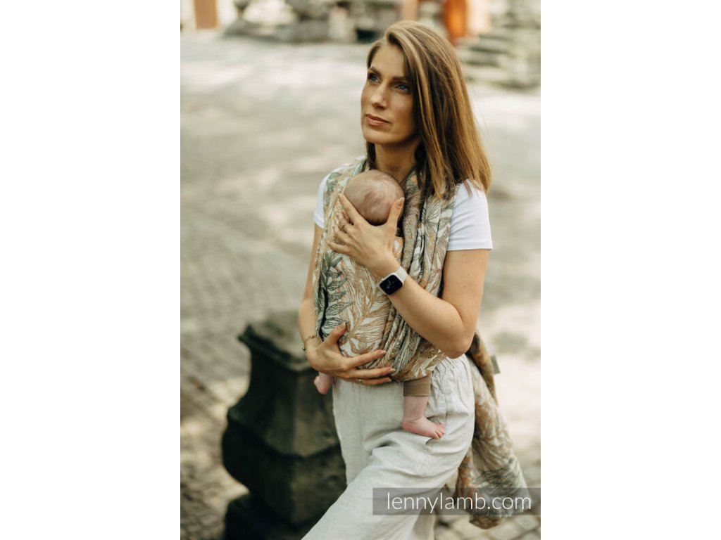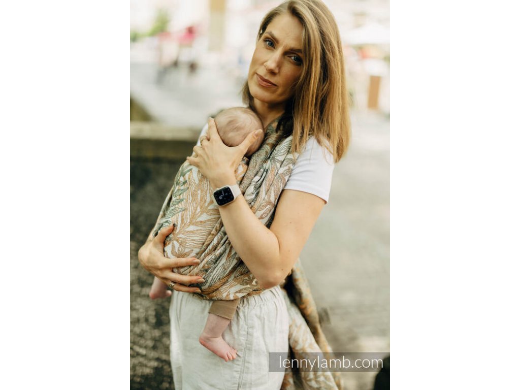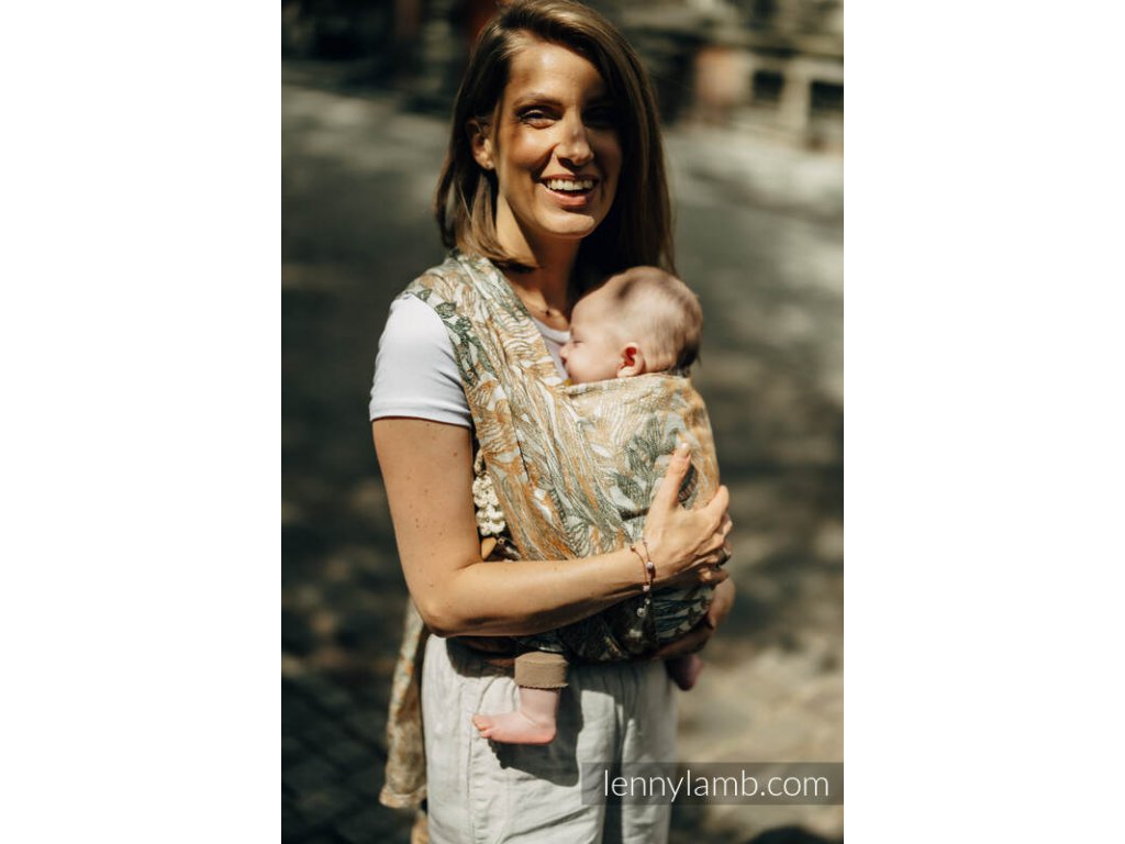 LennyLamb Rainforest Serene je novinka z dílny LennyLamb. Tento šátek je vyroben ze 100% lnu, je velmi tenký a pevný. Z tohoto důvodu ho nedoporučujeme na novorozené miminko, je vhodný spíše od 4 měsíců a s přehledem si poradí i s tříletým nošencem ve vícevrstvém úvazu, proto se dá tento šátek označit za šátek na celé nosící období.