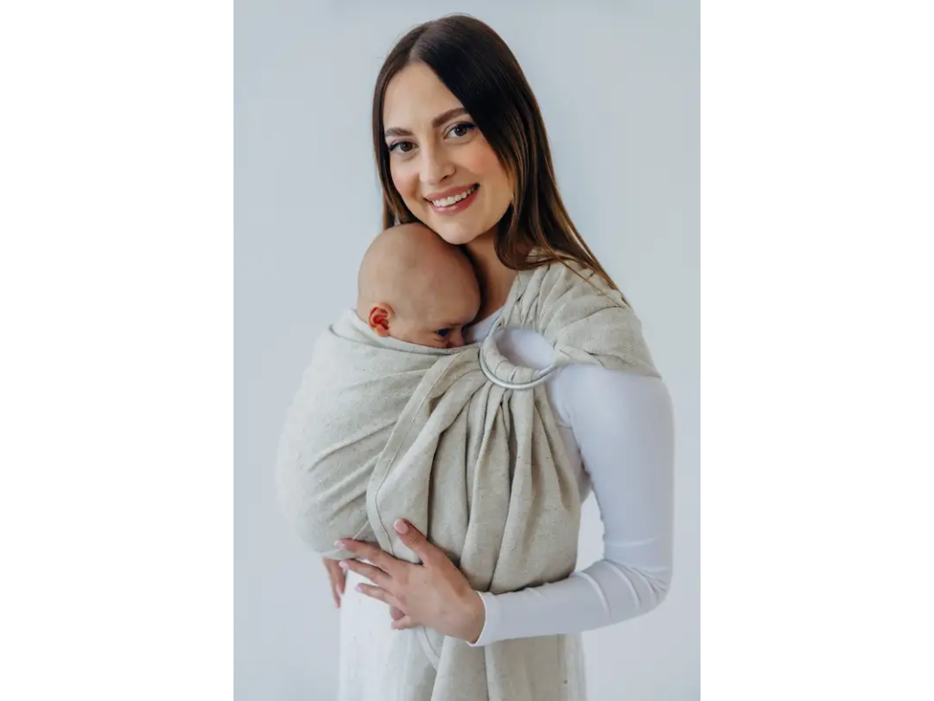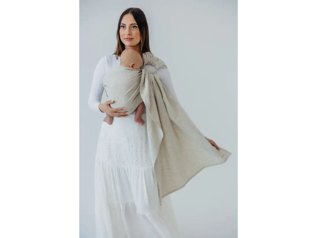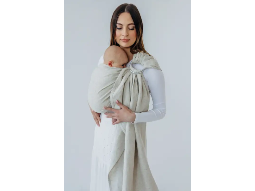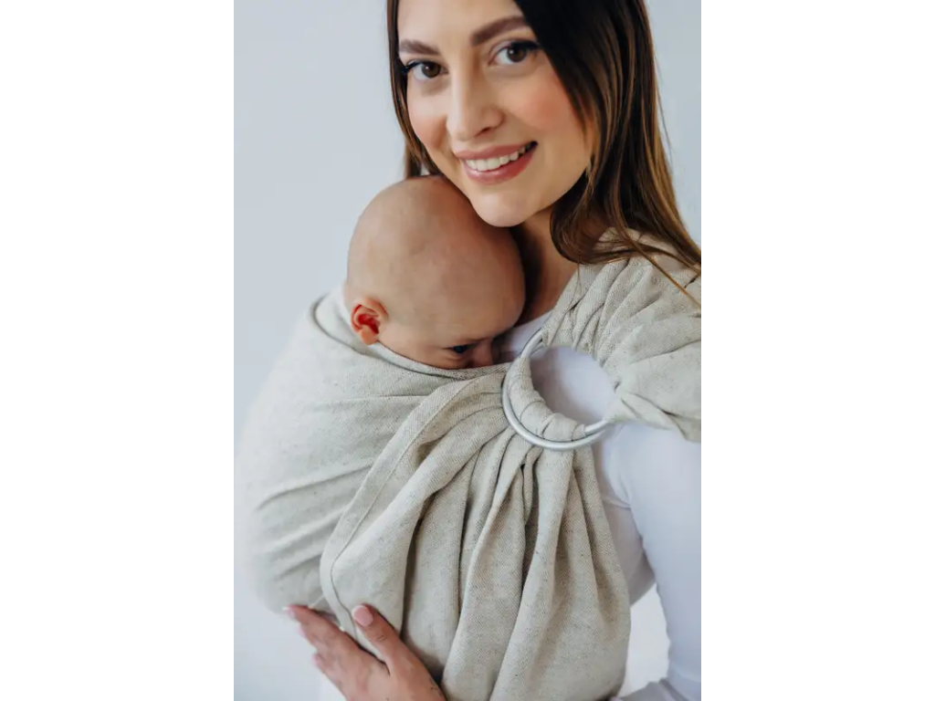 LennyLamb Ring Slingy jsou vzorem standardně uzpůsobeny pro levé rameno, nicméně v případě potřeby lze nosit na obou ramenou. Vyberte si, kterou stranu šátku budete ukazovat světu dnes a kterou zítra.