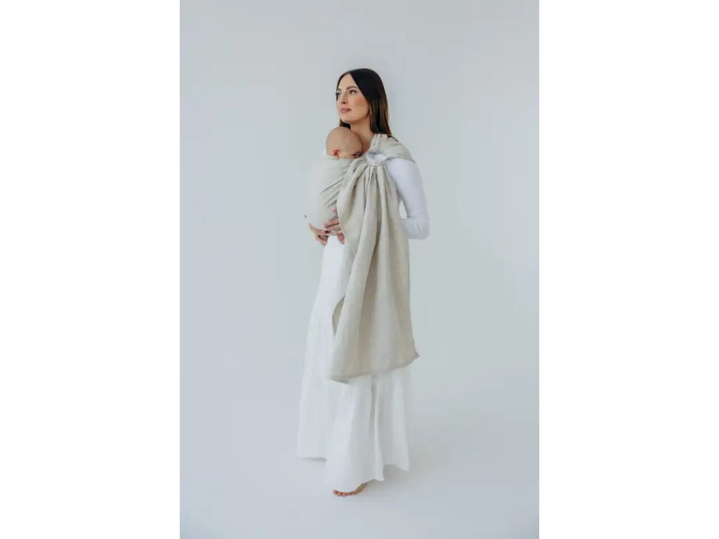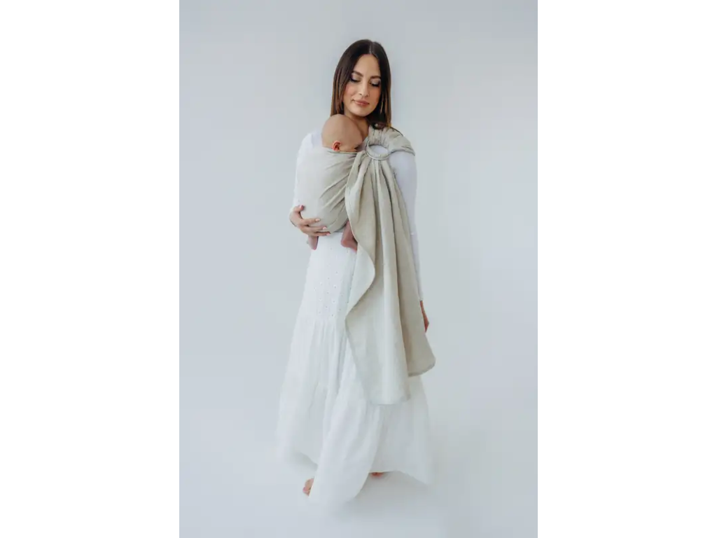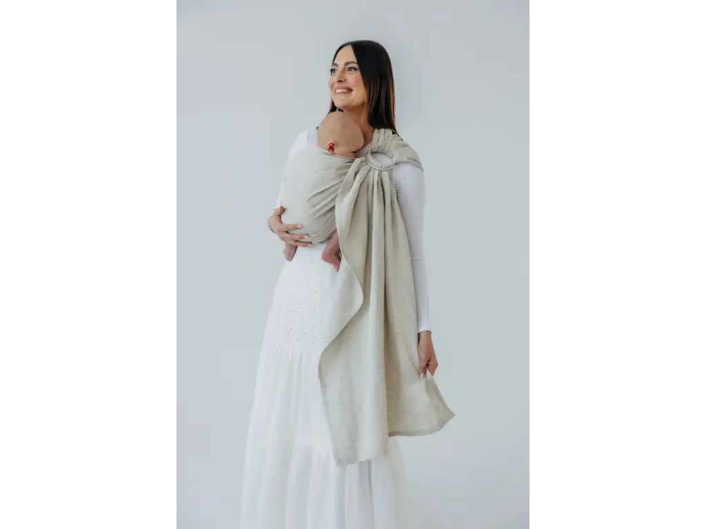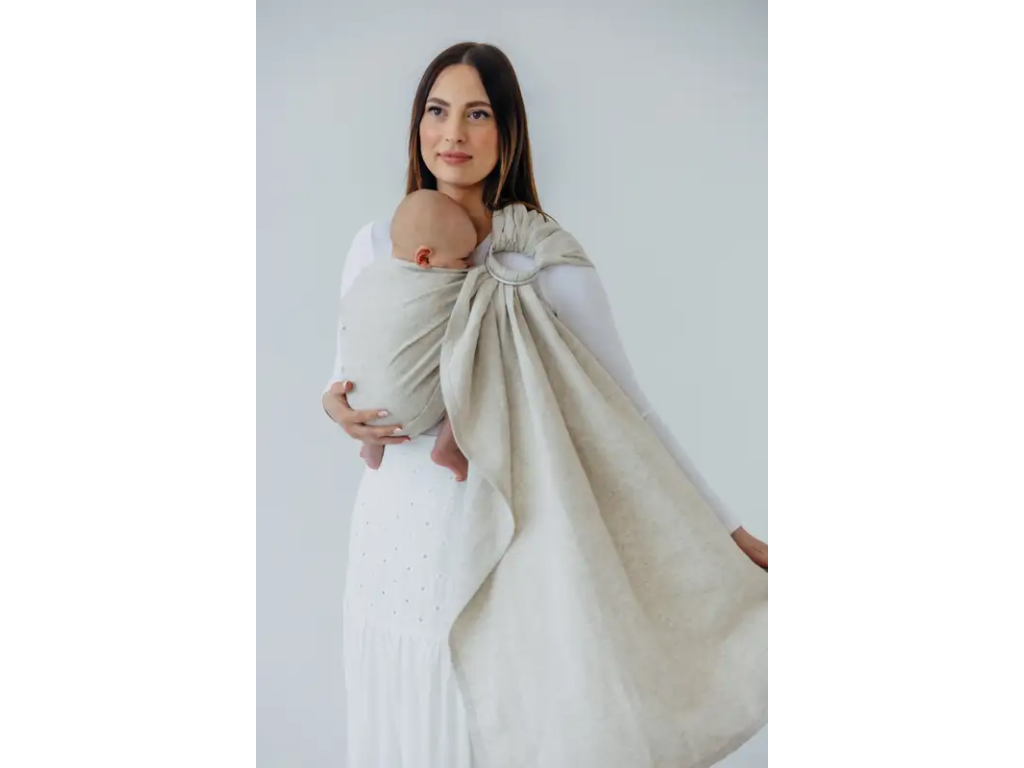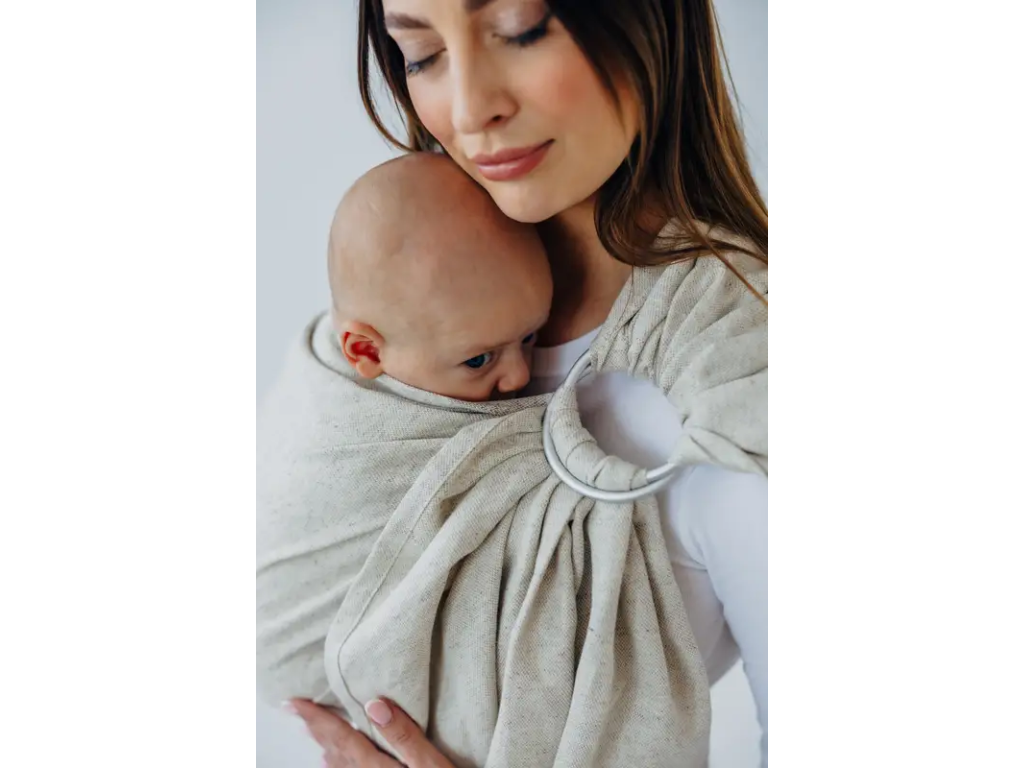 LennyLamb Ring Slingy jsou vzorem standardně uzpůsobeny pro levé rameno, nicméně v případě potřeby lze nosit na obou ramenou. Vyberte si, kterou stranu šátku budete ukazovat světu dnes a kterou zítra.