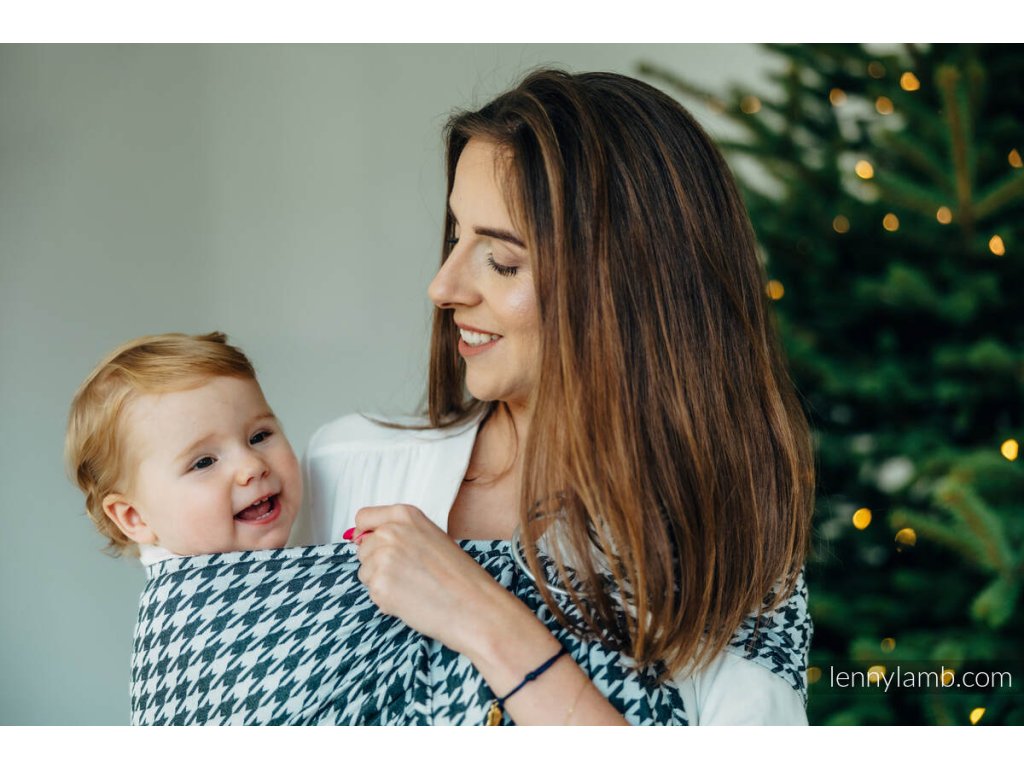 LennyLamb Pata De Gallo Pixels je tenký šátek na nošení dětí určený pro ty nejmenší drobečky, díky svému složení si však poradí i s dvouletým nošencem, proto se dá tento šátek zařadit do kategorie na celé nosící období. Tento šátek vás překvapí na první dotek, již od vybalení je krásně hebký a měkký.