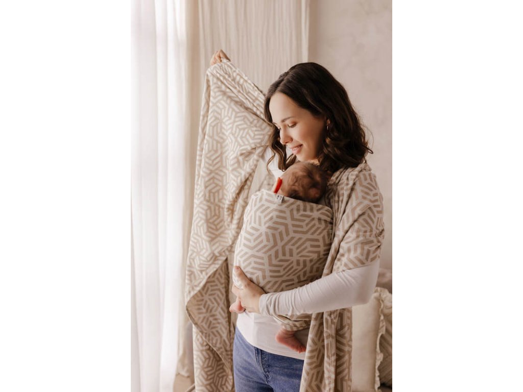 LennyLamb Tetris Presto je tenčí, velmi měkký a hebký příměsový šátek s bambusovou viskózou. Pokud máte miminko s váhou pod 3,5kg nebo letního novorozence je tento šátek ta správná volba. Šátek bude pohodlný ve vícevrstvém úvaze tak do 6měsíců.