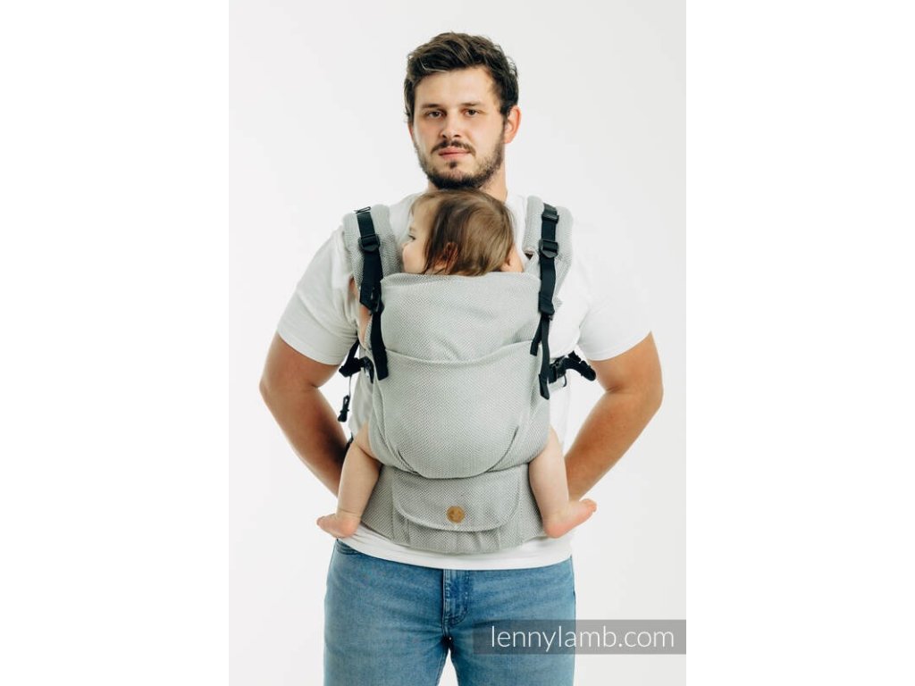 Mezilopatková (hrudní) spona je na klasickou přezku. Nově ji lze posunovat po celé délce ramenních popruhů nebo ji zcela sundat, pokud chcete nosítko nosit zapnuté do kříže. Pokud pregerujete magnetickou hrudní sponu, můžete ji dokoupit zde: https://www.isatky.cz/zbozi/lennylamb-magneticka-spona/ snadno ji vyměníte.